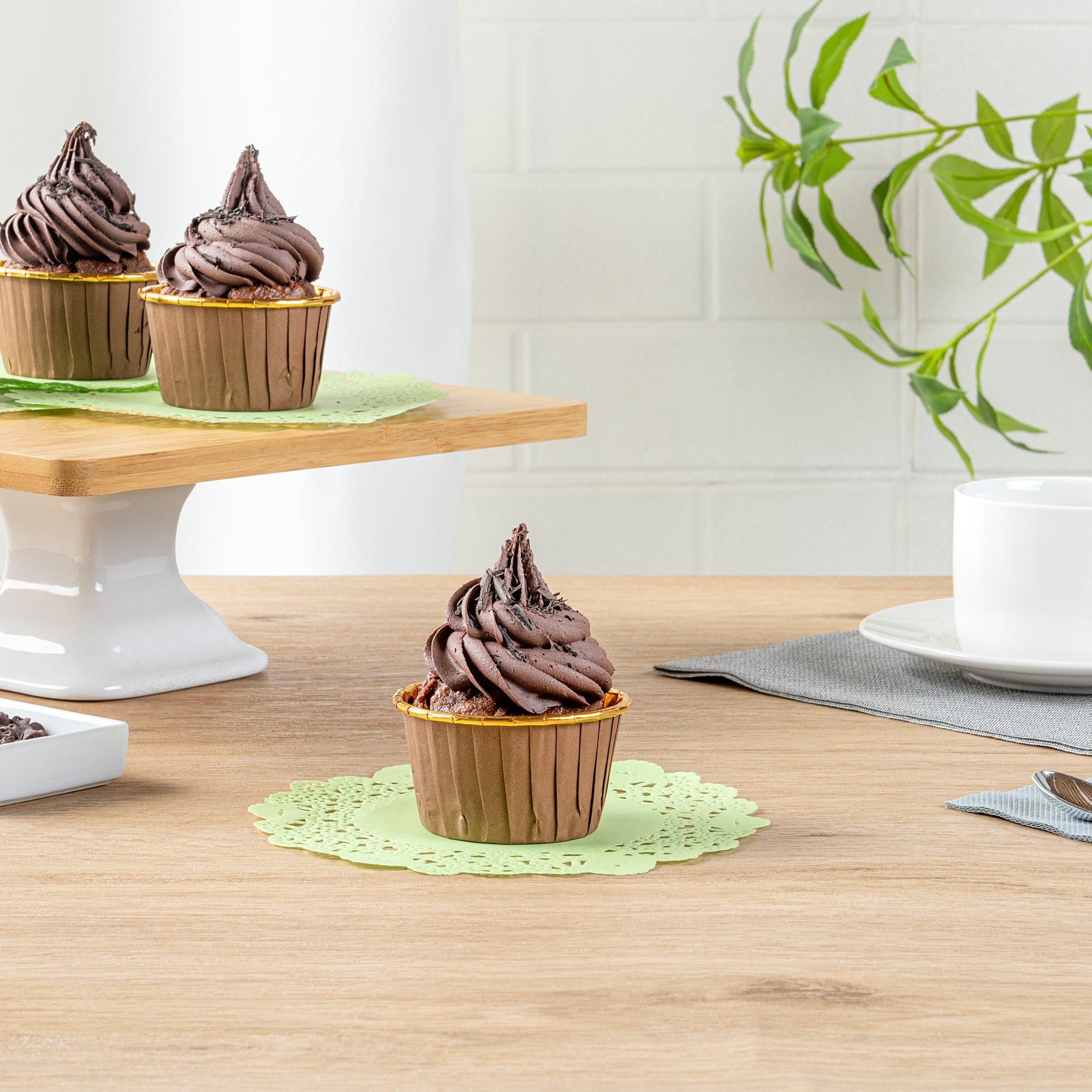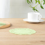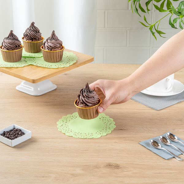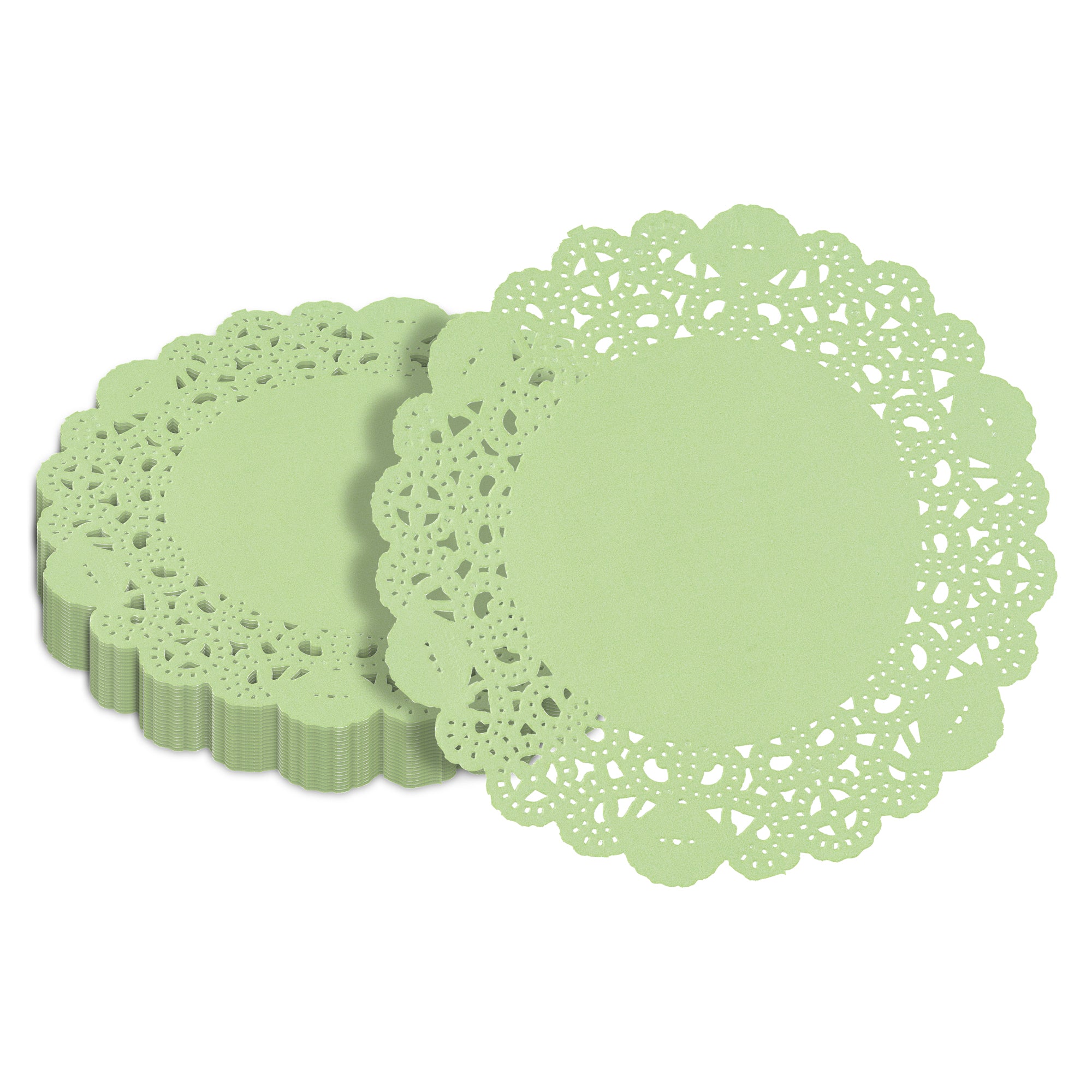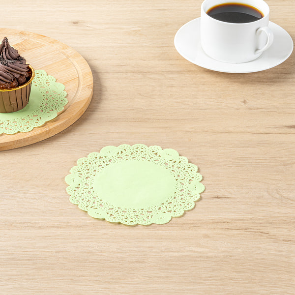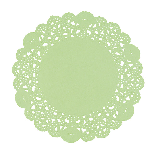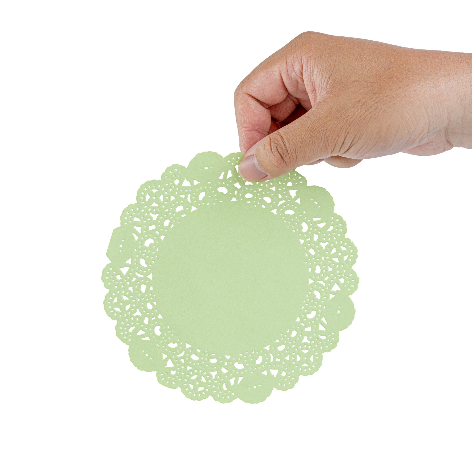Elevate your dessert presentations with our Pastry Tek Round Green Paper Doilies. These paper doilies add an elegant touch to your dessert displays, making every treat look more enticing. Crafted from high-quality paper, these lace doilies provide durability while displaying desserts at bakeries or catered luncheons without tearing or losing their structural integrity. With their intricate lace-like details, these table doilies increase the visual appeal of food presentations while serving as functional barriers, protecting surfaces, and absorbing moisture. The green finish of these colored paper doilies is versatile, allowing them to complement a wide range of table settings and themes, making them an ideal choice for various events and occasions. Additionally, these disposable doilies eradicate the hassle of post-event cleanup, offering a convenient and time-saving solution for busy hosts and food establishments. Measuring 6 inches in diameter, these small doilies are perfect for use under cupcakes, petit fours, macarons, and other small treats. Sold in a 4,000 count box.
