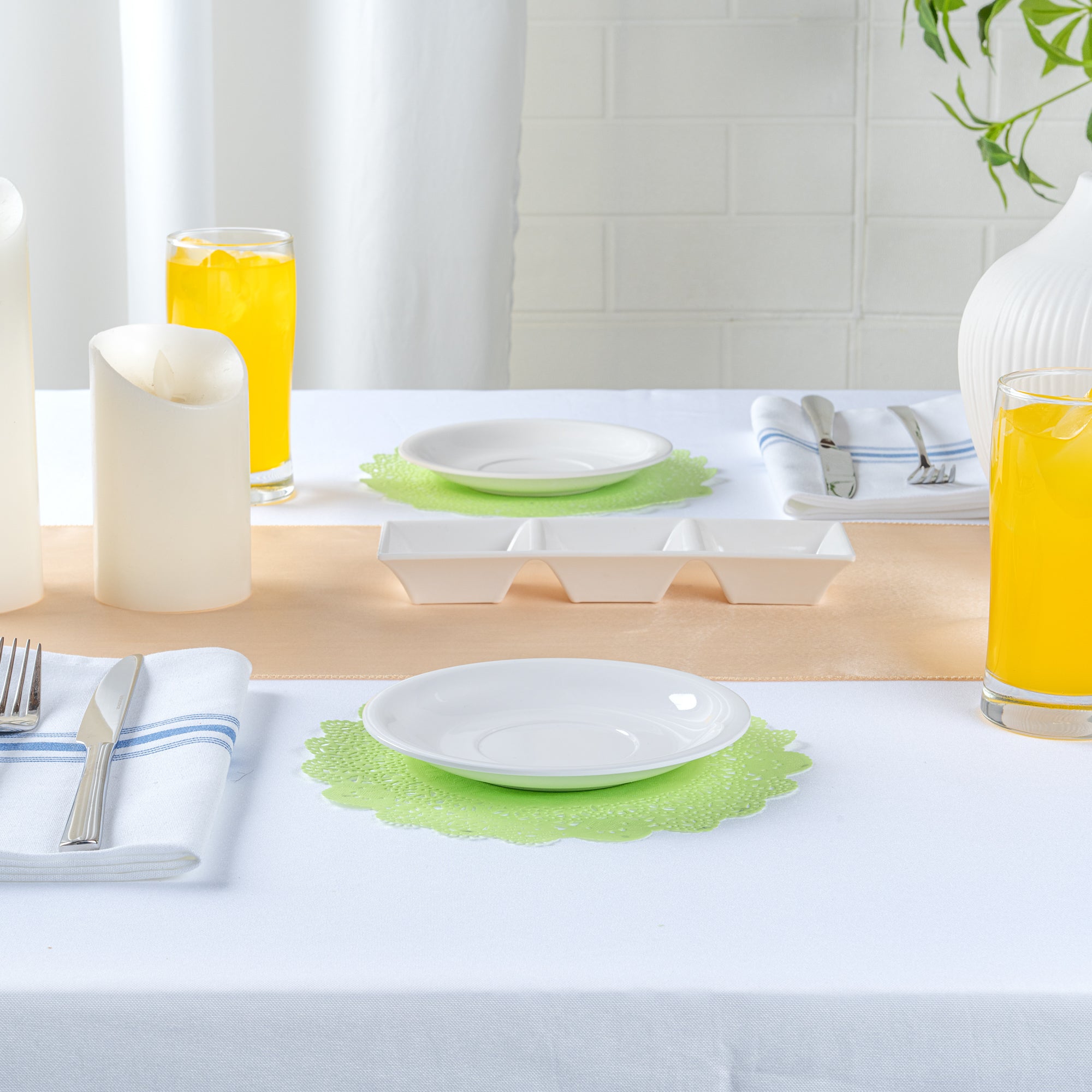 - Lace design adds an elegant and decorative touch to table settings