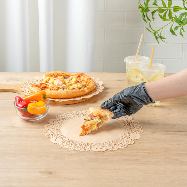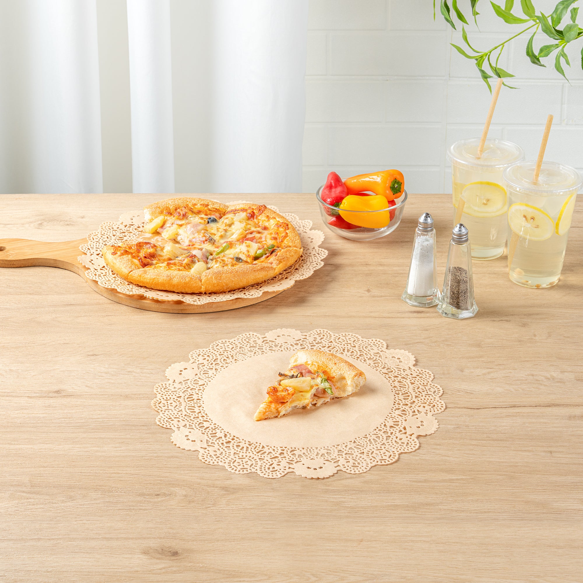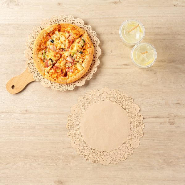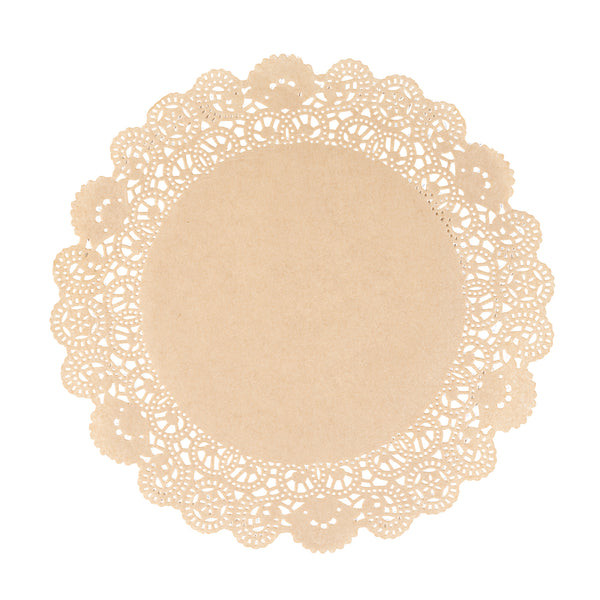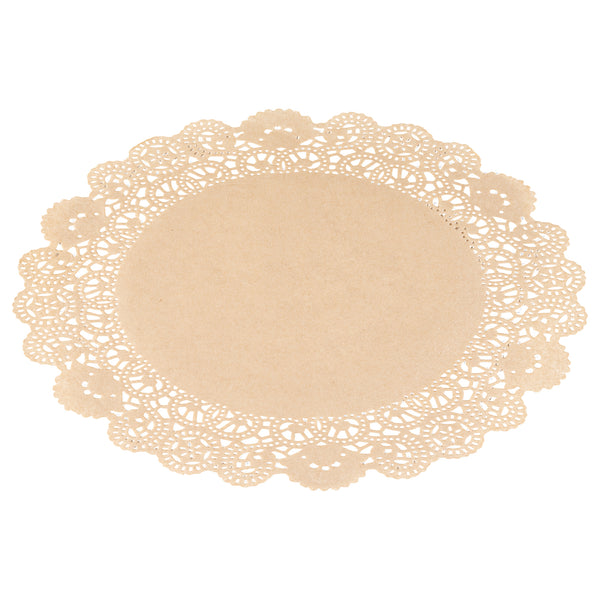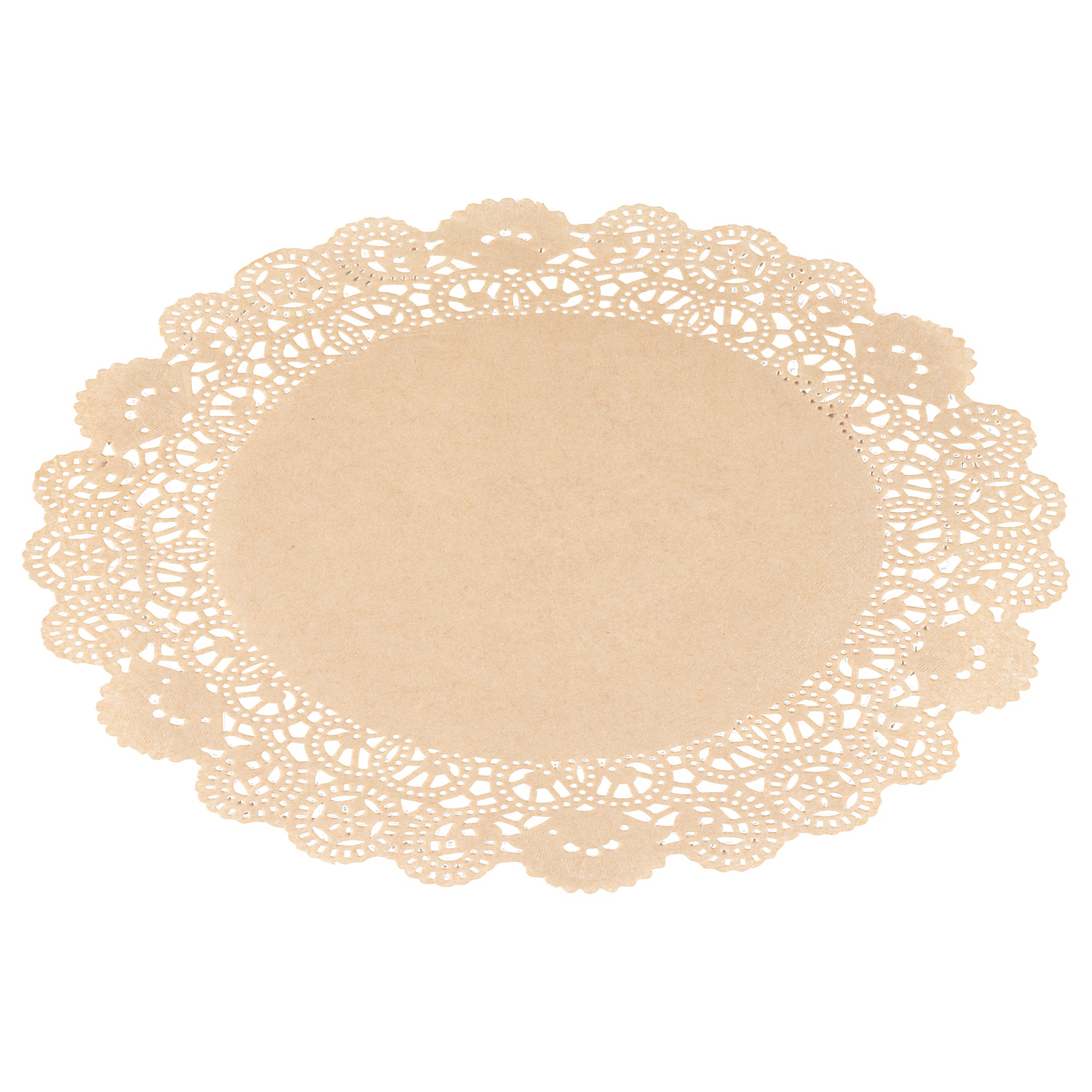 Transform your dessert presentations with our Pastry Tek Round Kraft Paper Doilies. Adding an elegant touch to any display, these paper doilies are crafted from high-quality paper, ensuring durability without tearing or losing structural integrity. These lace doilies beautifully showcase desserts at bakeries or catered luncheons. Featuring intricate lace-like details, these table doilies enhance visual appeal while serving as functional barriers that protect surfaces and absorb moisture. The kraft finish of these doilies complements a wide range of table settings and themes, making them ideal for various events and occasions. Disposable by design, these kraft doilies eradicate the hassle of post-event cleanup, offering a convenient and time-saving solution for busy hosts and food establishments. Whether used under cupcakes, petit fours, macarons, or other small treats, these small doilies add sophistication to any setup. Measuring 12 inches in diameter, these lace doilies are perfectly sized for diverse food presentations. Sold in a 100 count box.