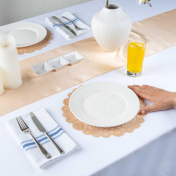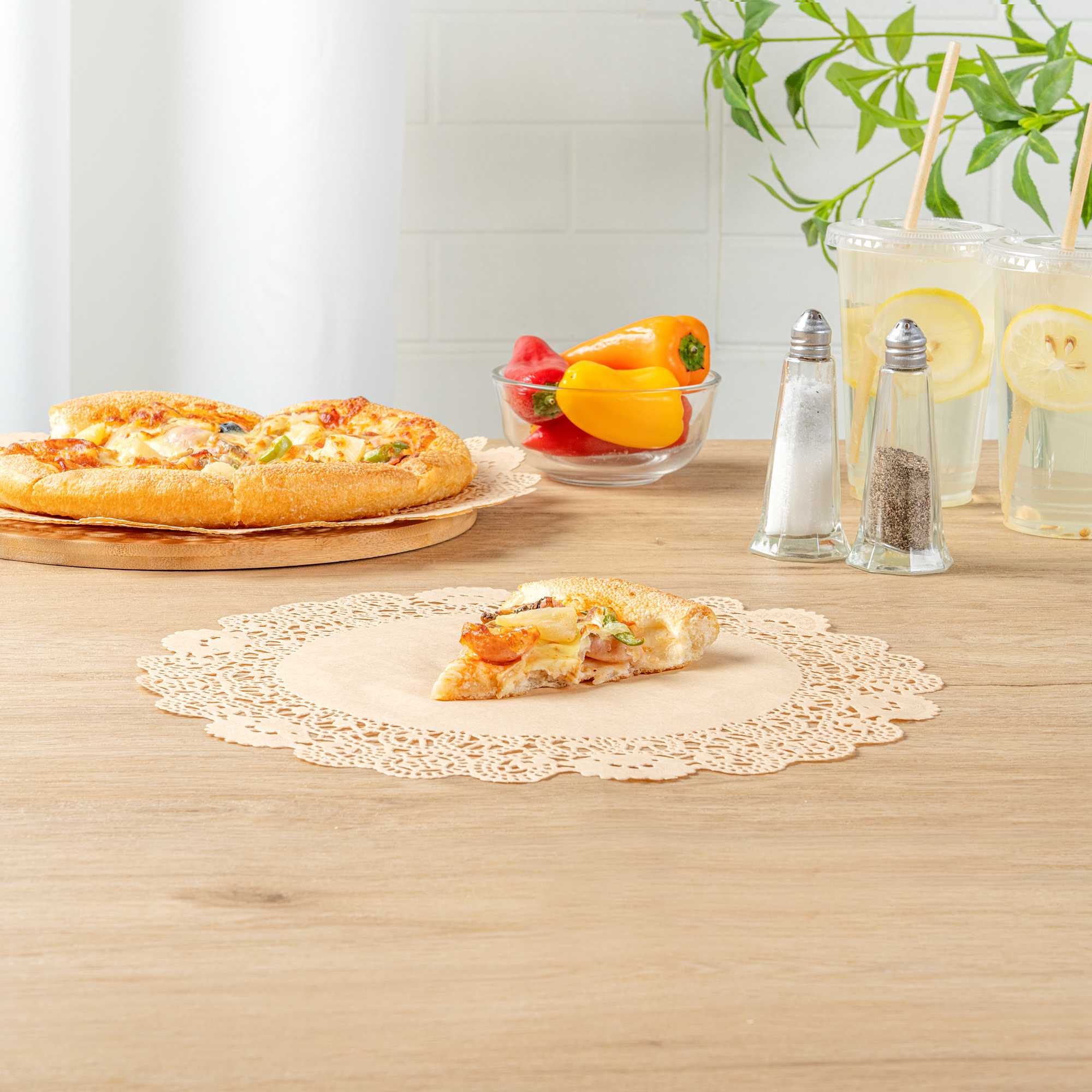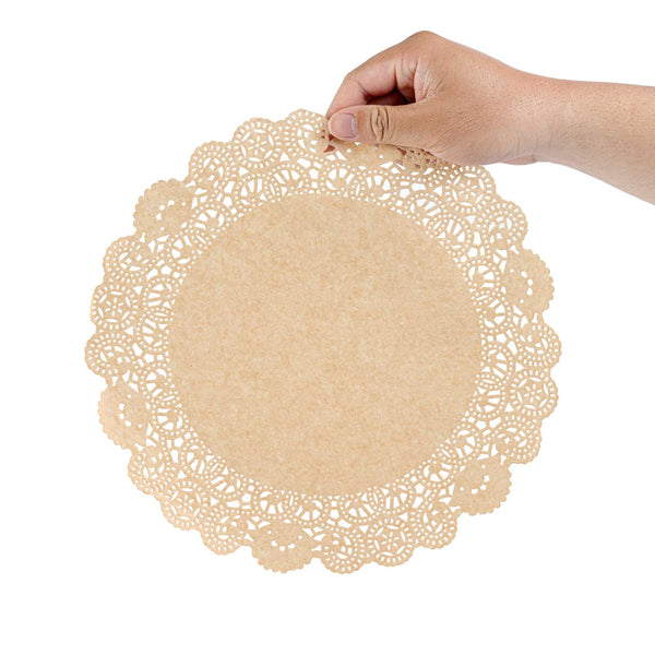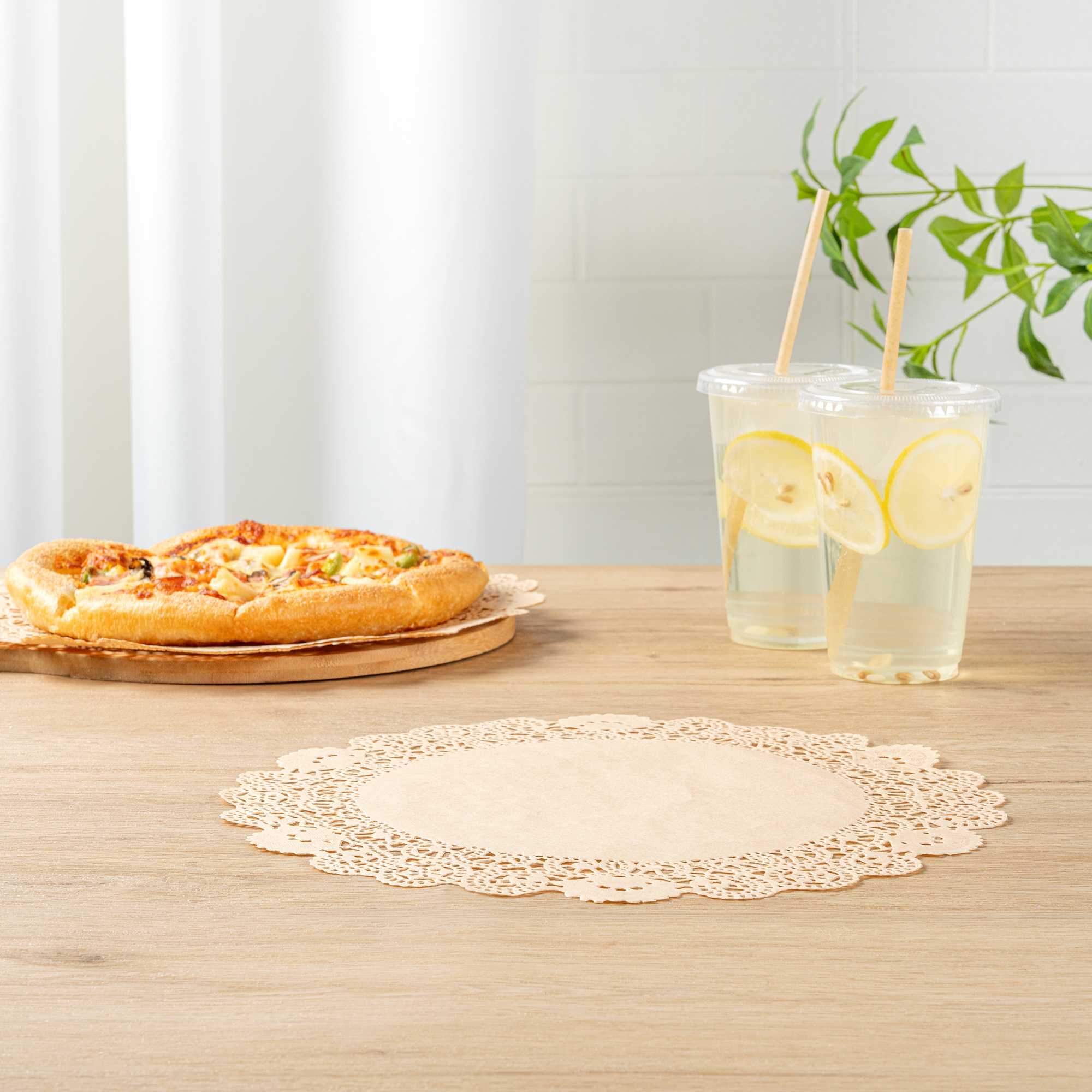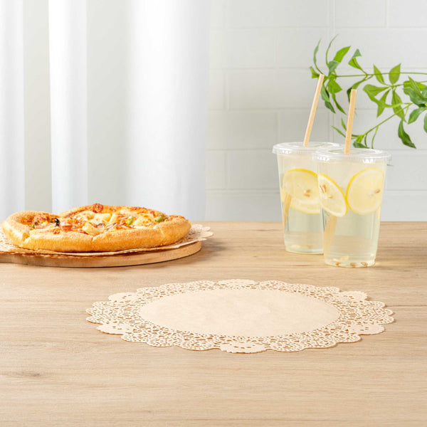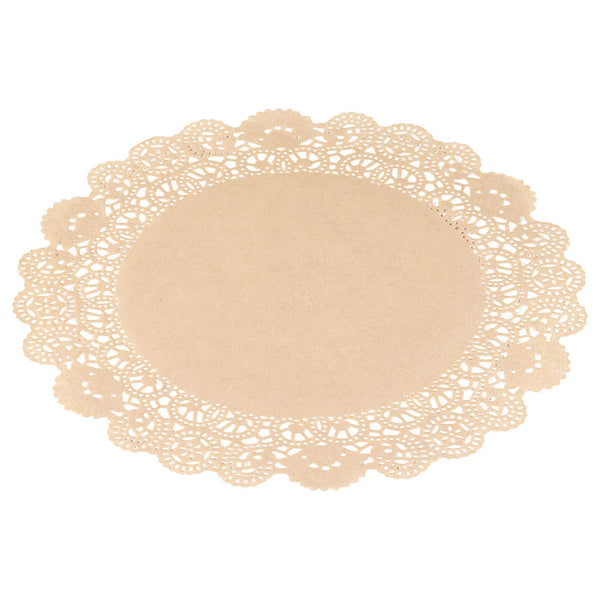 Transform your dessert presentations with our Pastry Tek Round Kraft Paper Doilies. Adding an elegant touch to any display, these paper doilies are crafted from high-quality paper, ensuring durability without tearing or losing structural integrity. These lace doilies beautifully showcase desserts at bakeries or catered luncheons. Featuring intricate lace-like details, these table doilies enhance visual appeal while serving as functional barriers that protect surfaces and absorb moisture. The kraft finish of these doilies complements a wide range of table settings and themes, making them ideal for various events and occasions. Disposable by design, these kraft doilies eradicate the hassle of post-event cleanup, offering a convenient and time-saving solution for busy hosts and food establishments. Whether used under cupcakes, petit fours, macarons, or other small treats, these small doilies add sophistication to any setup. Measuring 12 inches in diameter, these lace doilies are perfectly sized for diverse food presentations. Sold in a 4,000 count box.