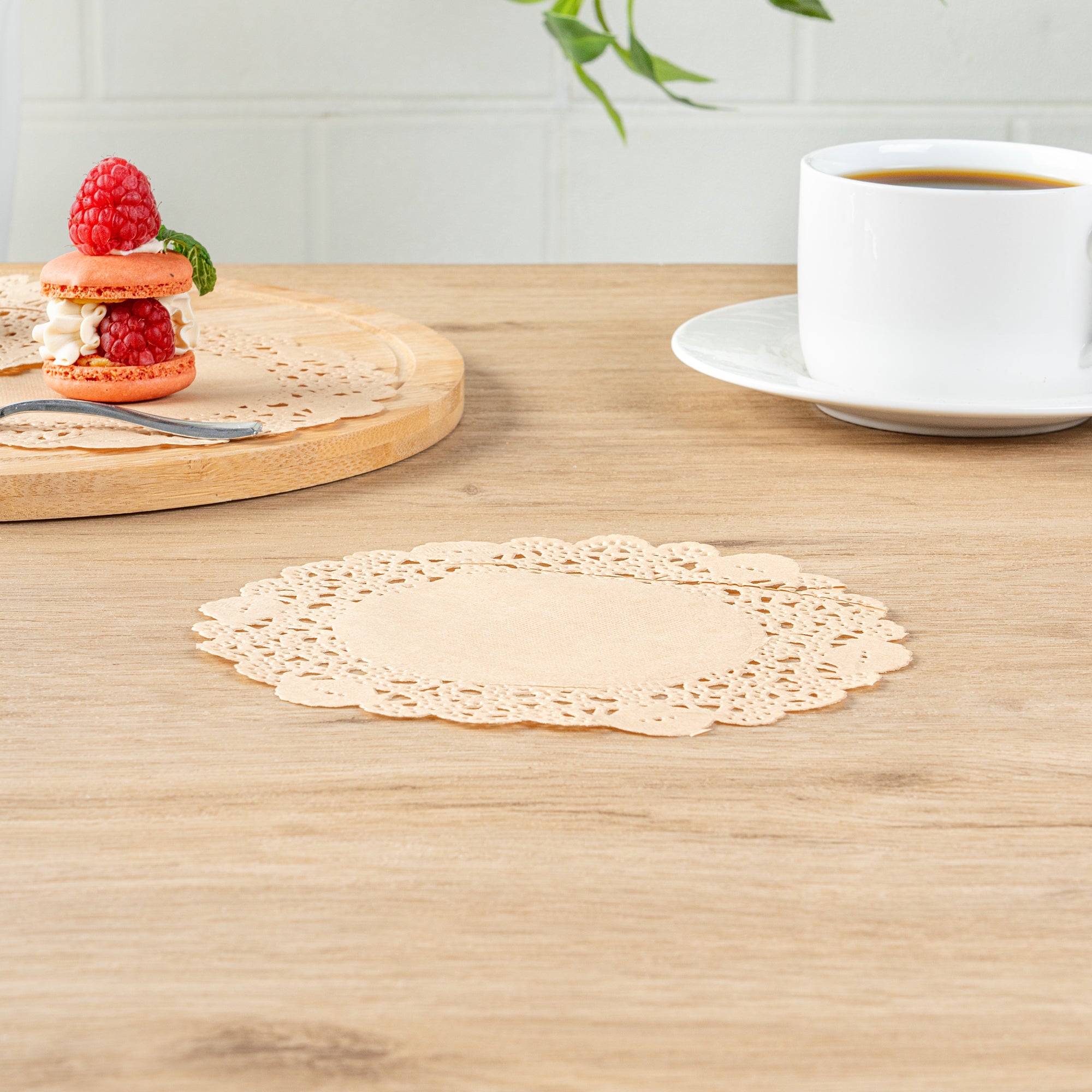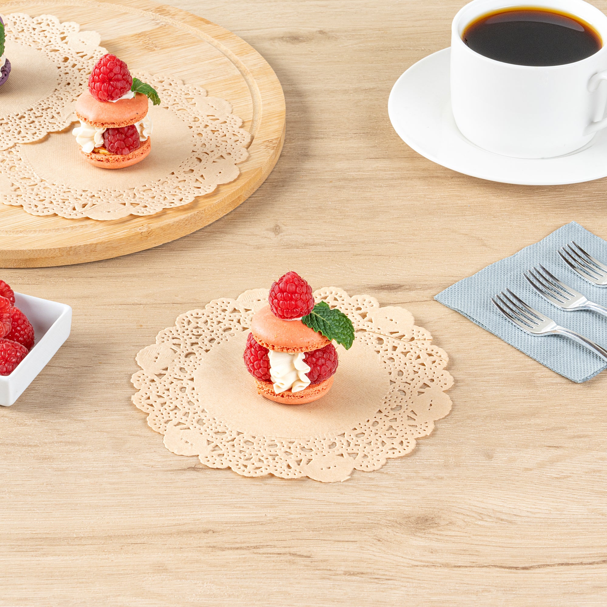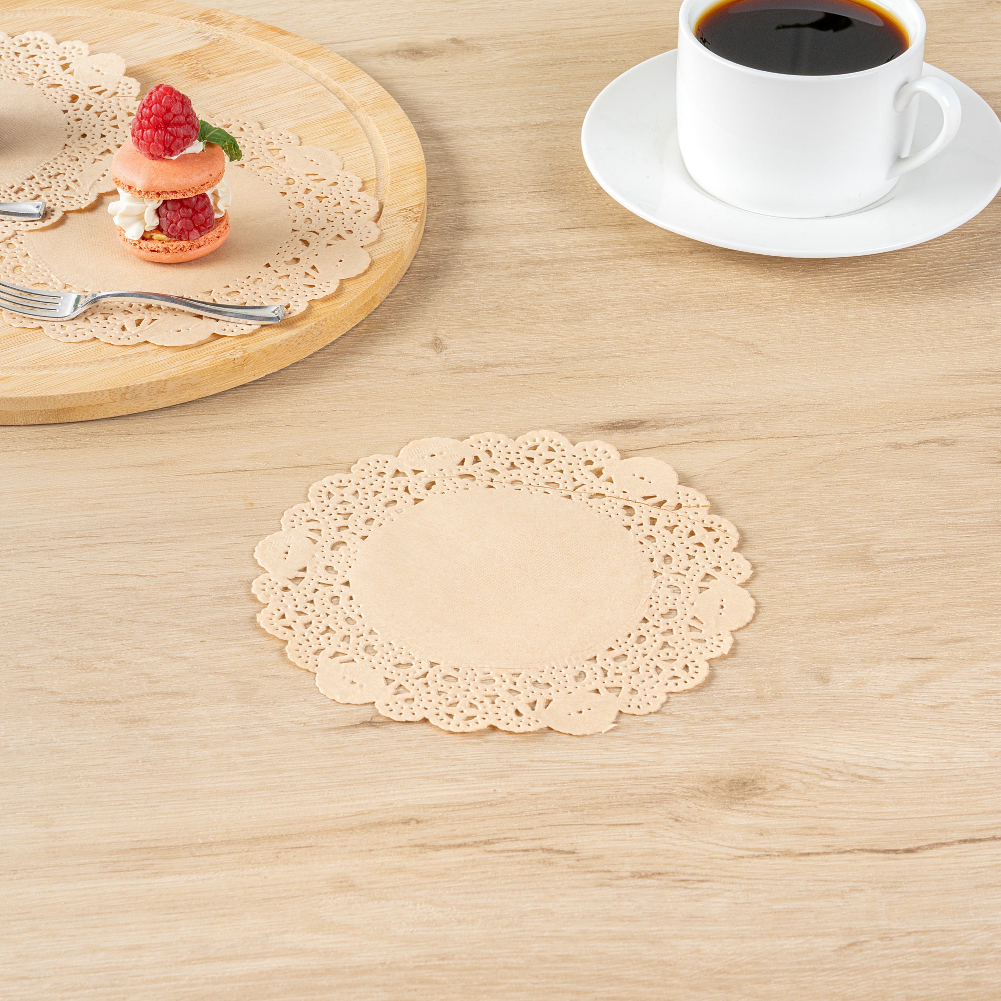 Elevate your presentations with elegant kraft paper doilies. Pastry Tek Elegant Presentation Kraft Paper Doilies showcase an intricate lace design that enhances the visual appeal of your baked goods and table settings, adding sophistication to any event. With a 6-inch round size, these lace paper doilies are ideal for displaying various pastries and cakes, accommodating diverse portion sizes seamlessly. Crafted from eco-friendly kraft paper, they provide a rustic aesthetic that resonates with environmentally conscious consumers. Their absorbent nature helps preserve the freshness of pastries, ensuring quality from kitchen to table. The disposable design of these decorative doilies for tables simplifies cleanup, making them perfect for high-volume foodservice events, reducing waste effortlessly. Meet your operational needs with ease; each order includes 4000 Pastry Tek Elegant Presentation Kraft Paper Doilies.