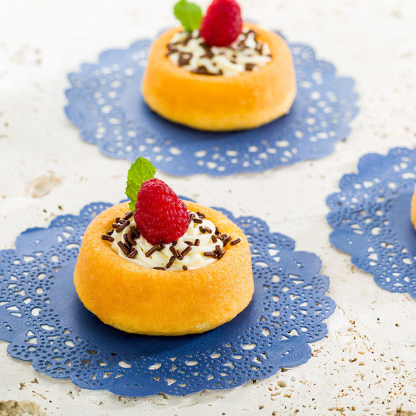 Enhance the elegance of your food presentation with our Pastry Tek Navy Blue Paper Doilies. Made from premium paper, these navy blue lace doilies are durable to display a variety of desserts. Each paper doily feature circular design with intricate lace-like details that provide a sophisticated touch to your baked goods and appetizers. These round doilies are ensures that moisture is effectively absorbed, allowing delicious offerings to shine without any unsightly grease or condensation stains. The striking navy blue finish of these 6-inch doilies elevate the visual appeal of any food presentation are perfect for a variety of applications, from underlining cupcake arrays to setting the stage for artisanal cheese spreads. These lace doilies are disposable for an effective after-service cleanup. Each navy blue paper doily measures 6 inches in diameter and is perfect for a range of plates and serving platters. Sold in a 4,000 count box.