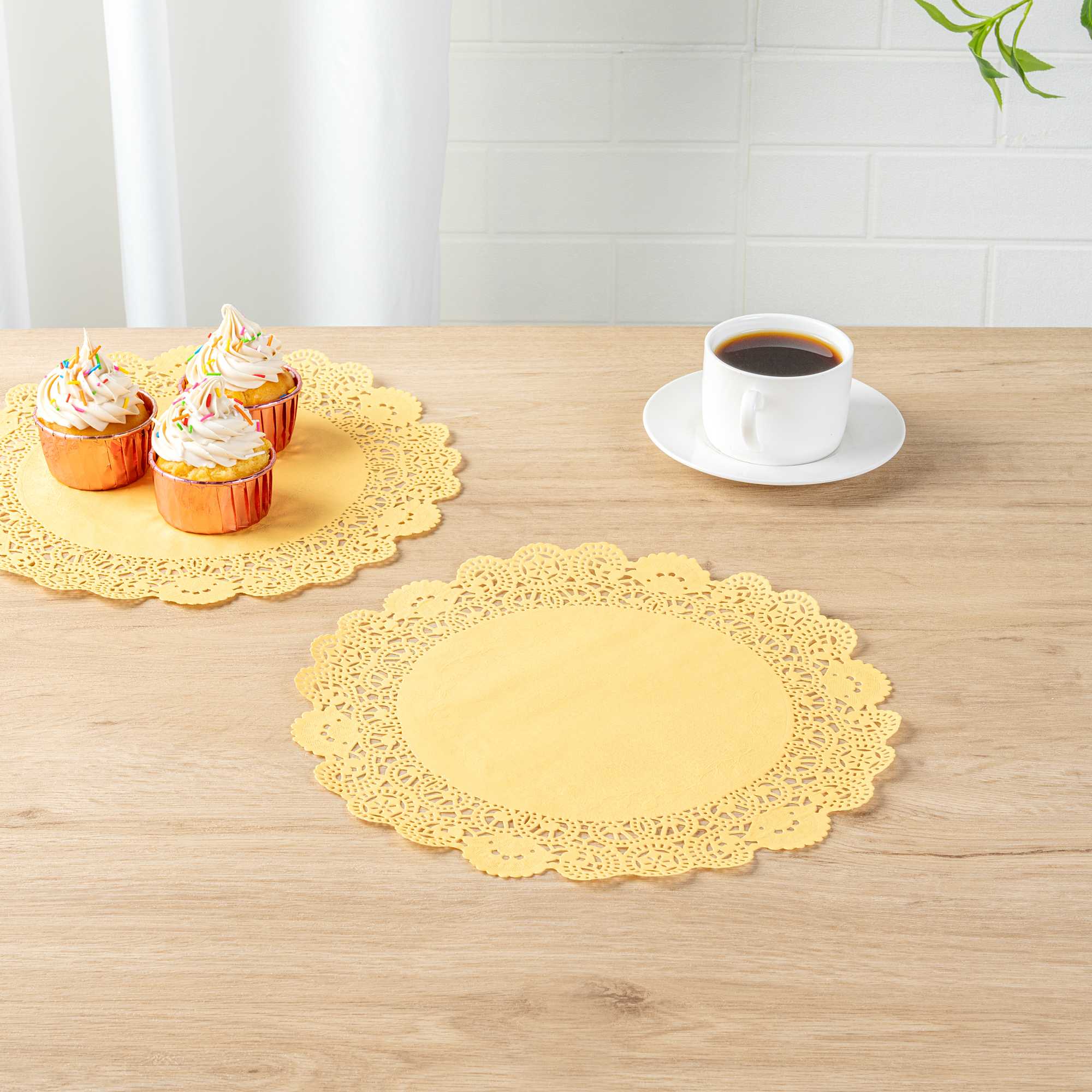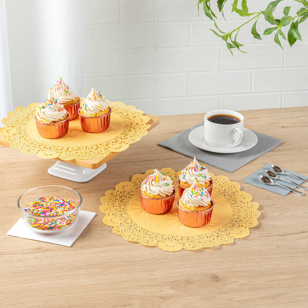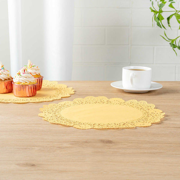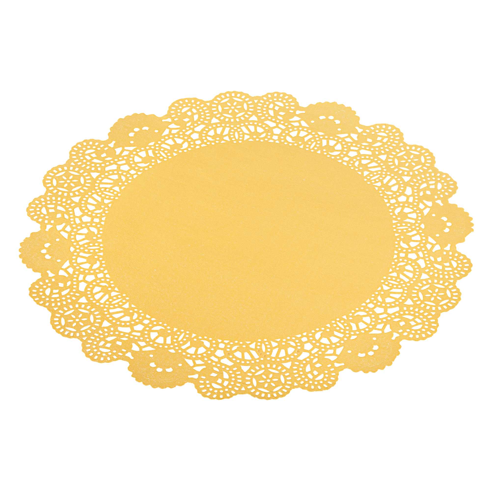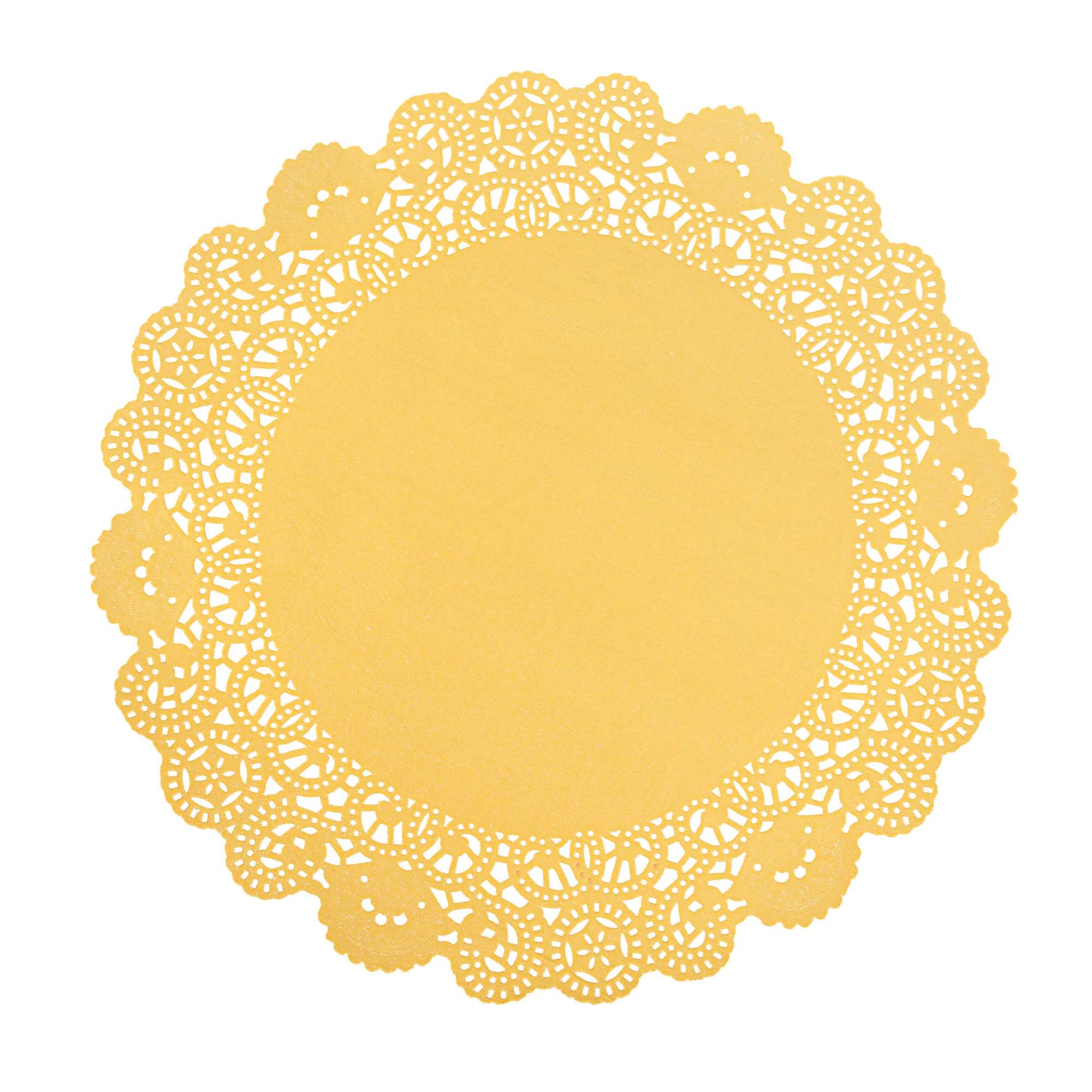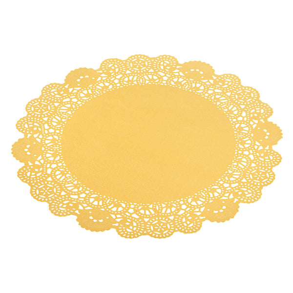 Enhance your dessert displays with elegance using our Pastry Tek Round Orange Paper Doilies. Crafted from high-quality paper, these lace doilies offer durability, ensuring that desserts at bakeries or catered luncheons are showcased without tearing or losing structural integrity. These table doilies feature intricate lace-like details that not only boost the visual appeal of your food presentations but also serve as functional barriers, protecting surfaces and absorbing moisture. The vibrant orange finish of these colored paper doilies is versatile, allowing them to effortlessly complement a wide range of table settings and themes, making them perfect for various events and occasions. Designed to be disposable, these small doilies eradicate the hassle of post-event cleanup, providing a convenient and time-saving solution for busy hosts and food establishments. Use these paper doilies under cupcakes, petit fours, macarons, and other small treats to add a touch of sophistication. Measuring 12 inches in diameter, these lace doilies offer ample space for a variety of desserts. Sold in a 4,000 count box.