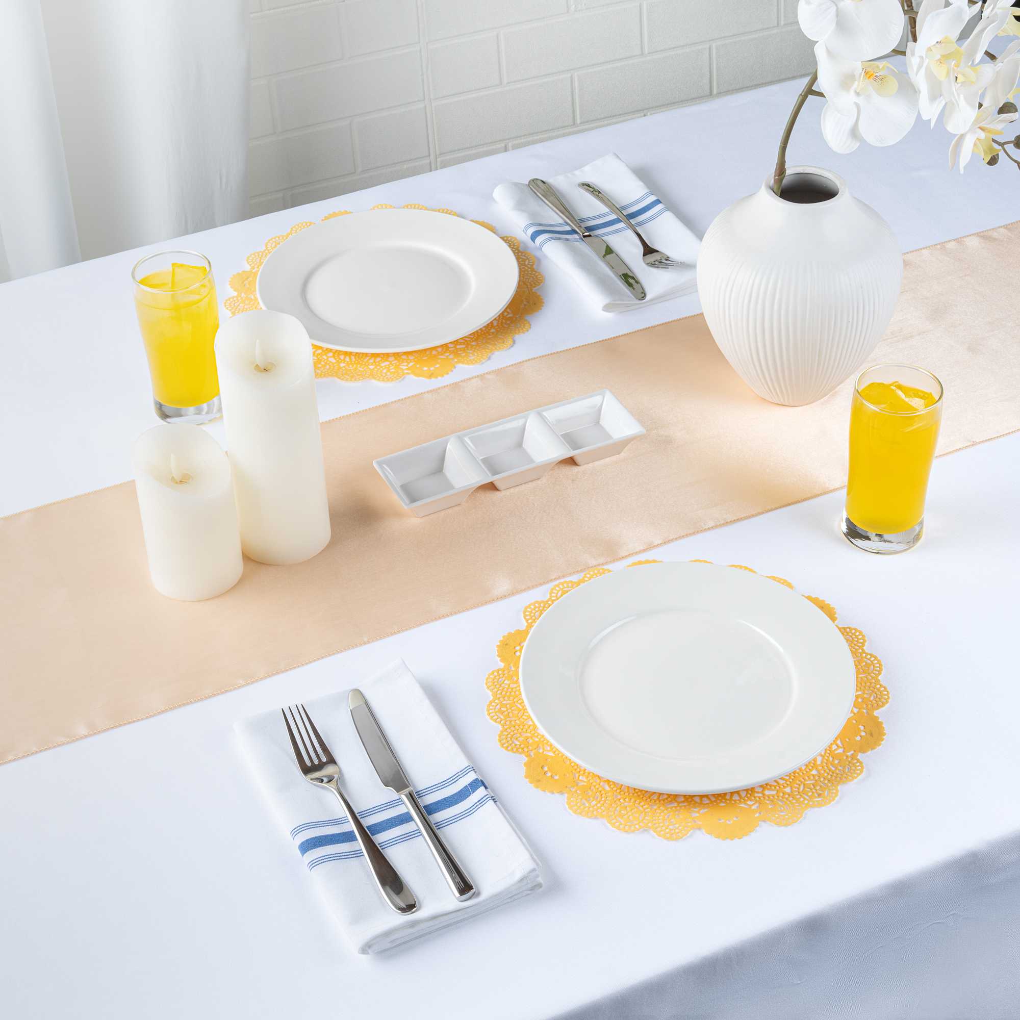 - Lace design adds an elegant and decorative touch to table settings