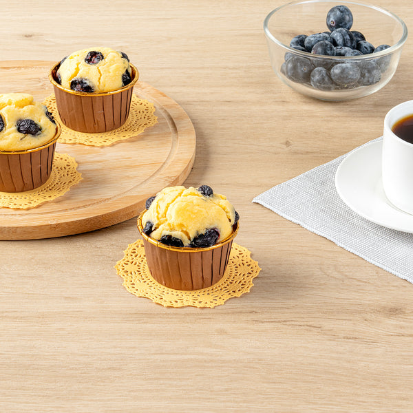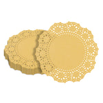 Enhance your dessert displays with our Pastry Tek Round Orange Paper Doilies. These paper doilies add an elegant touch to your dessert presentations, making them perfect for showcasing double chocolate brownies at bakeries or catered luncheons. Crafted from high-quality paper, these lace doilies provide durability without tearing or losing their structural integrity. Featuring intricate lace-like details, these table doilies increase the visual appeal of food presentations while serving as functional barriers to protect surfaces and absorb moisture. The specific colored paper doilies' finish is versatile, allowing them to complement a wide range of table settings and themes, making them an ideal choice for various events and occasions. Disposable by design, these small doilies eradicate the hassle of post-event cleanup, offering a convenient and time-saving solution for busy hosts and food establishments. These small doilies can be used under cupcakes, petit fours, macarons, and other small treats, adding a touch of sophistication to any display. Measuring 4 inches in diameter, these paper doilies fit perfectly under a variety of treats. Sold in a 100 count box.