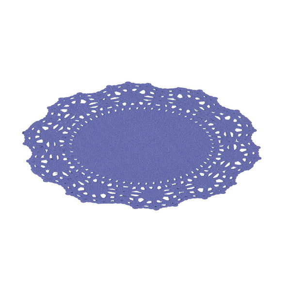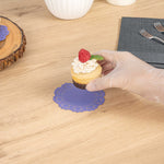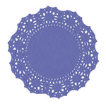 Enhance your dessert displays with our Pastry Tek Round Purple Paper Doilies, adding an elegant touch to any setting. Crafted from high-quality paper, these lace doilies provide durability while displaying double chocolate brownies at bakeries or catered luncheons without tearing or losing their structural integrity. Featuring intricate lace-like details, these table doilies increase the visual appeal of food presentations while serving as functional barriers, protecting surfaces, and absorbing moisture. The specific colored paper doilies' finish is versatile, allowing them to complement a wide range of table settings and themes, making them an ideal choice for various events and occasions. These disposable paper doilies eradicate the hassle of post-event cleanup, offering a convenient and time-saving solution for busy hosts and food establishments. Small doilies like these can be used under cupcakes, petit fours, macarons, and other small treats, making them perfect for a variety of confections. Measuring 4 inches in diameter, these lace doilies are the perfect size for enhancing your food presentation. Sold in a 4,000 count box.