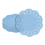 ROUND SKY BLUE PAPER DOILIES - LACE