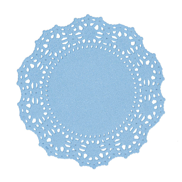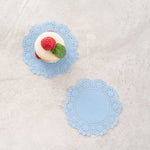 ROUND SKY BLUE PAPER DOILIES - LACE