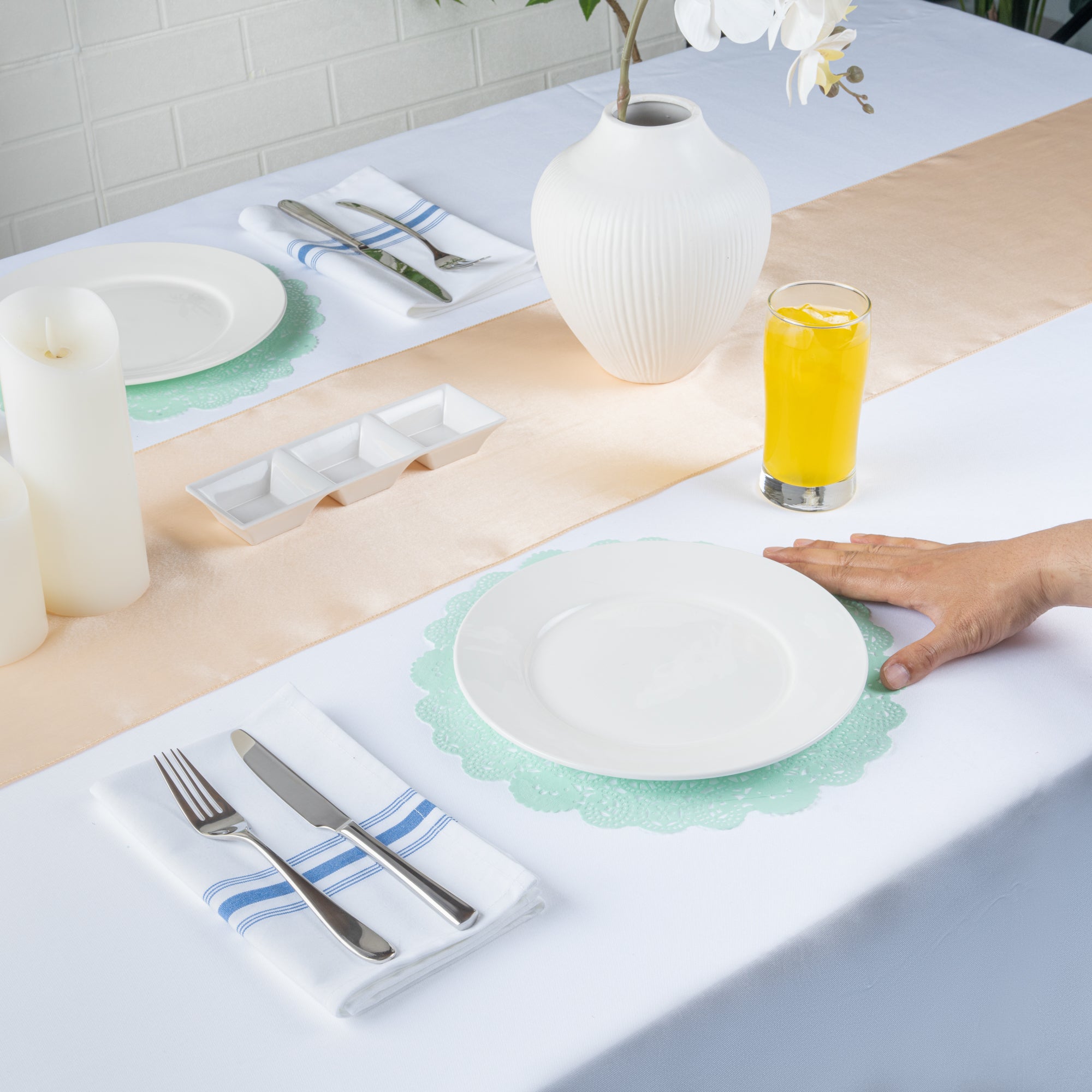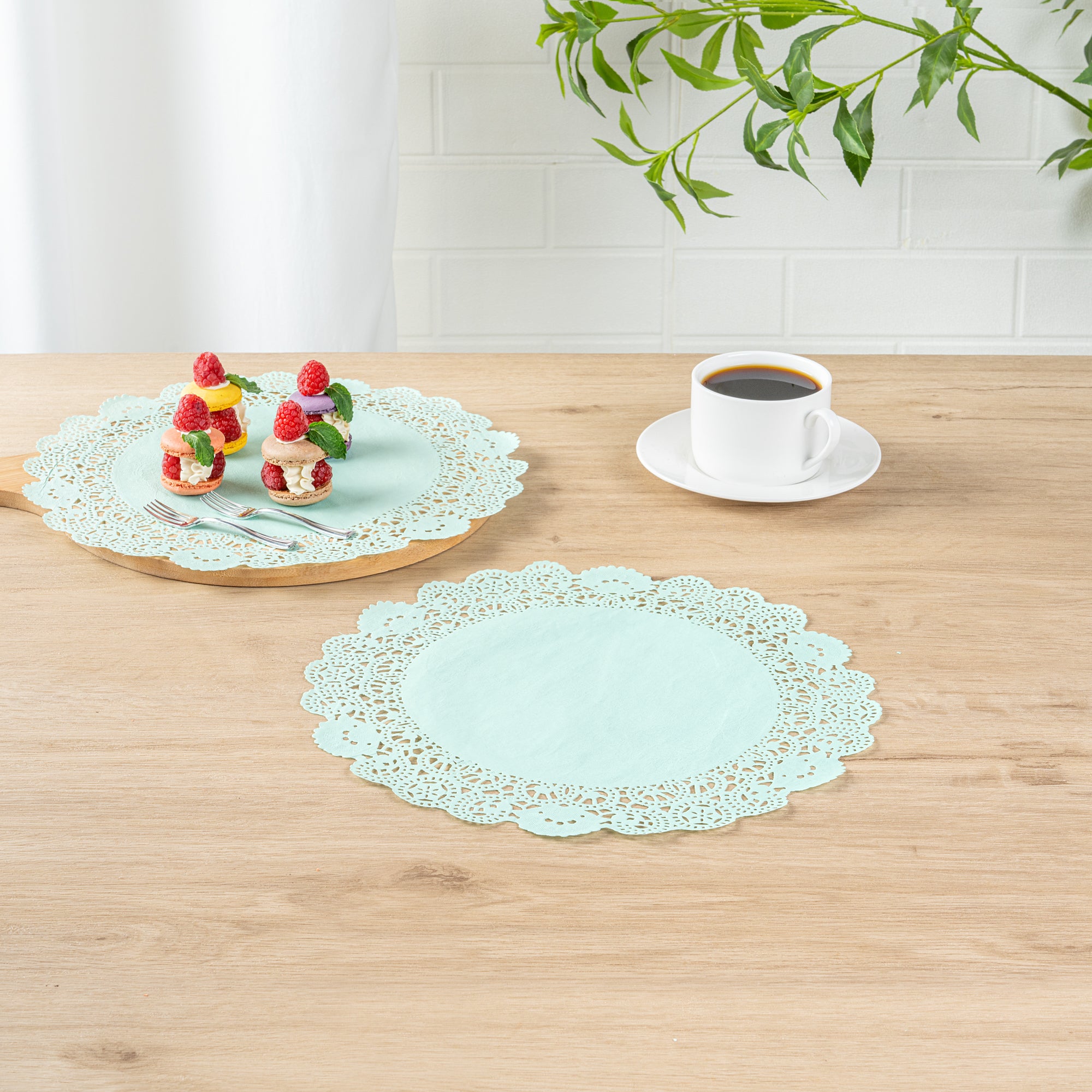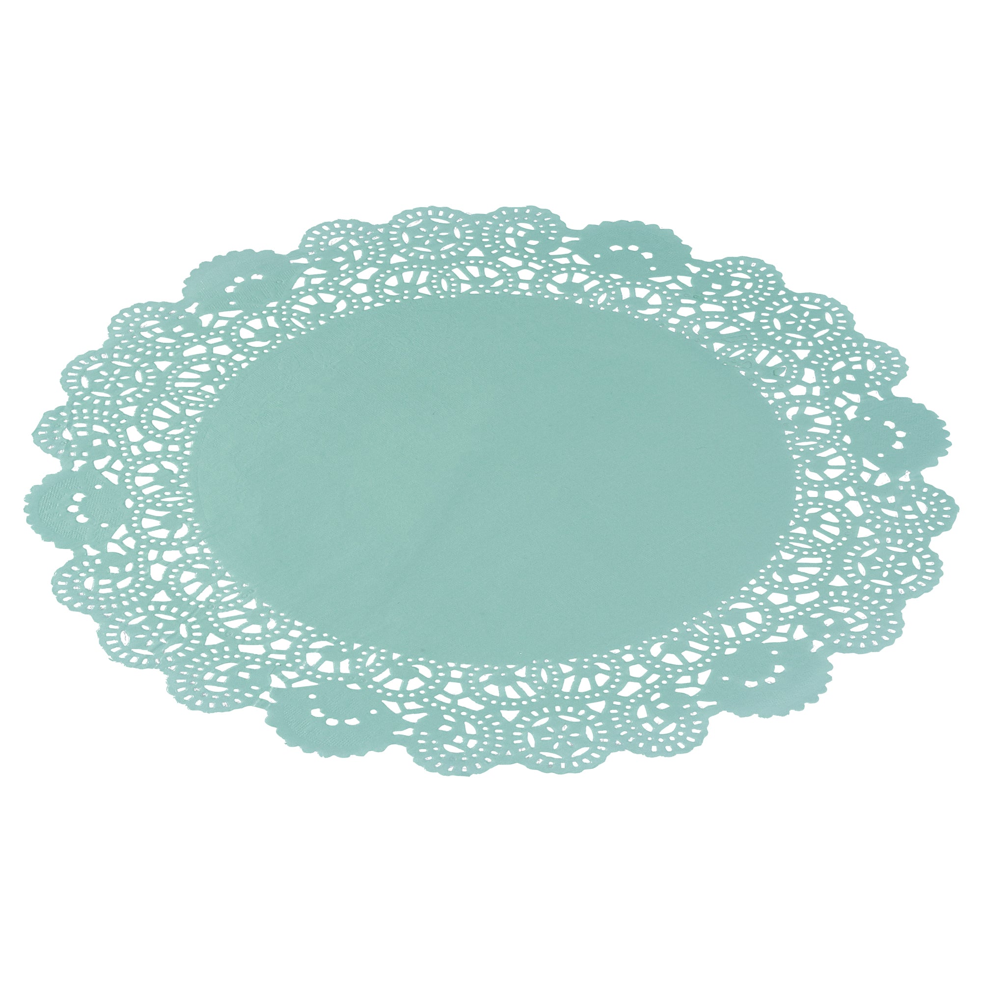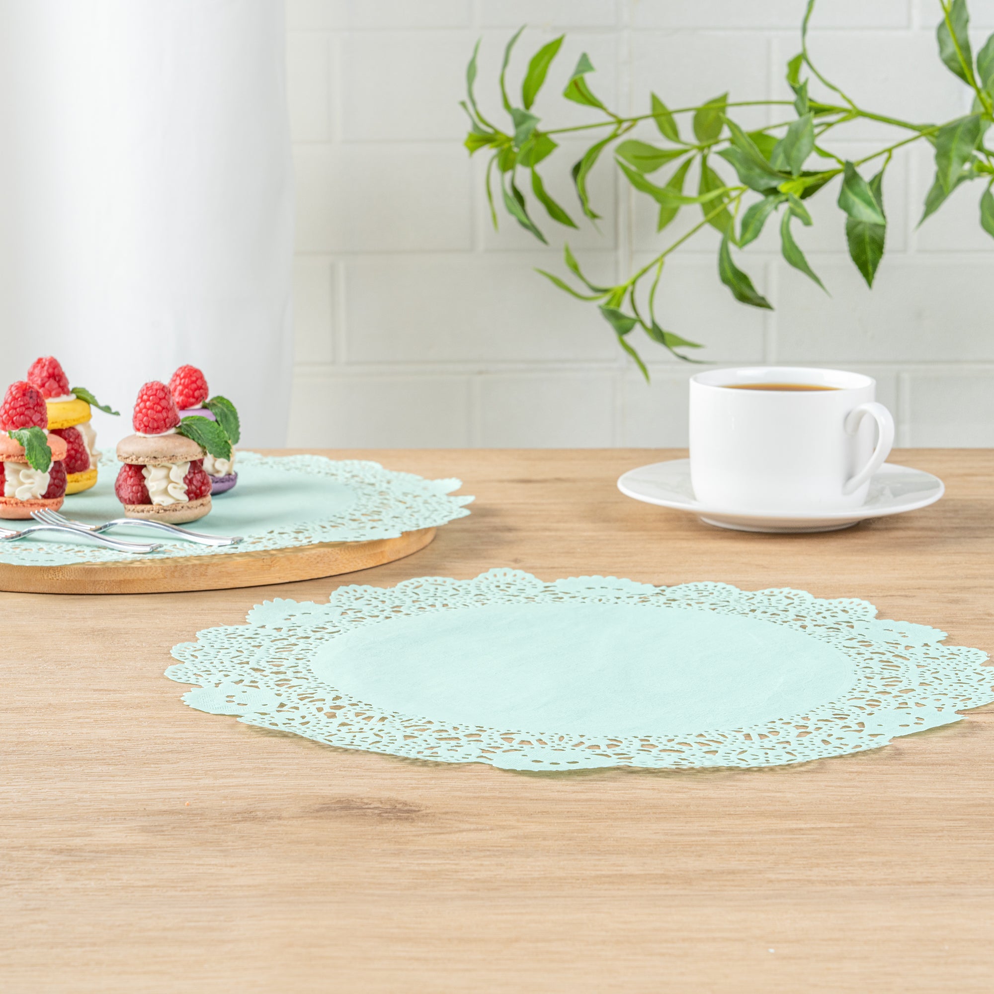 Enhance your dessert displays with our Pastry Tek Round Teal Paper Doilies, the perfect addition to any food presentation. Crafted from high-quality paper, these lace doilies provide exceptional durability, allowing you to display desserts at bakeries or catered luncheons without tearing or losing their structural integrity. Designed with intricate lace-like details, these table doilies increase the visual appeal of food presentations while serving as functional barriers that protect surfaces and absorb moisture. The teal finish of these colored paper doilies is versatile, complementing a wide range of table settings and themes, making them ideal for various events and occasions. Perfect for busy hosts and food establishments, these disposable paper doilies eradicate the hassle of post-event cleanup, offering a convenient and time-saving solution. These small doilies are perfect for use under cupcakes, petit fours, macarons, and other small treats. Measuring 12 inches in diameter, these lace doilies fit perfectly on standard serving trays and dessert displays. Sold in a 100 count box.