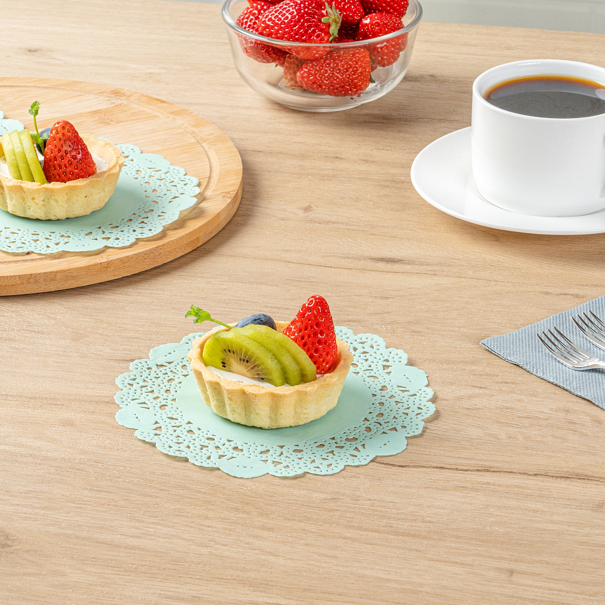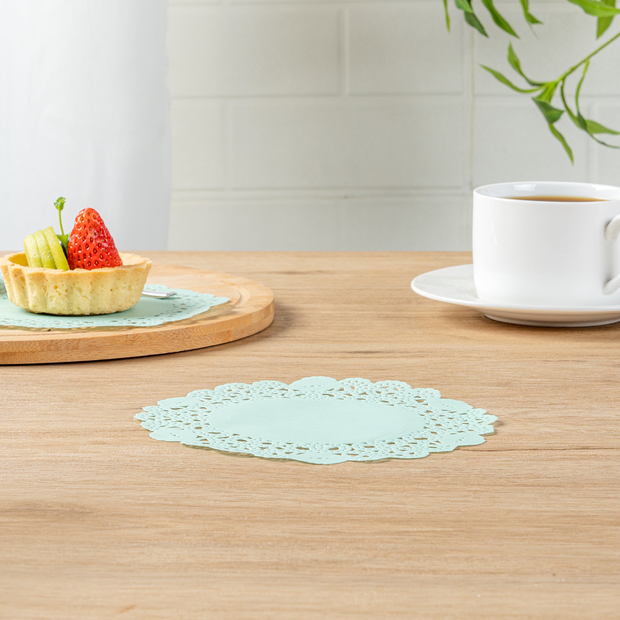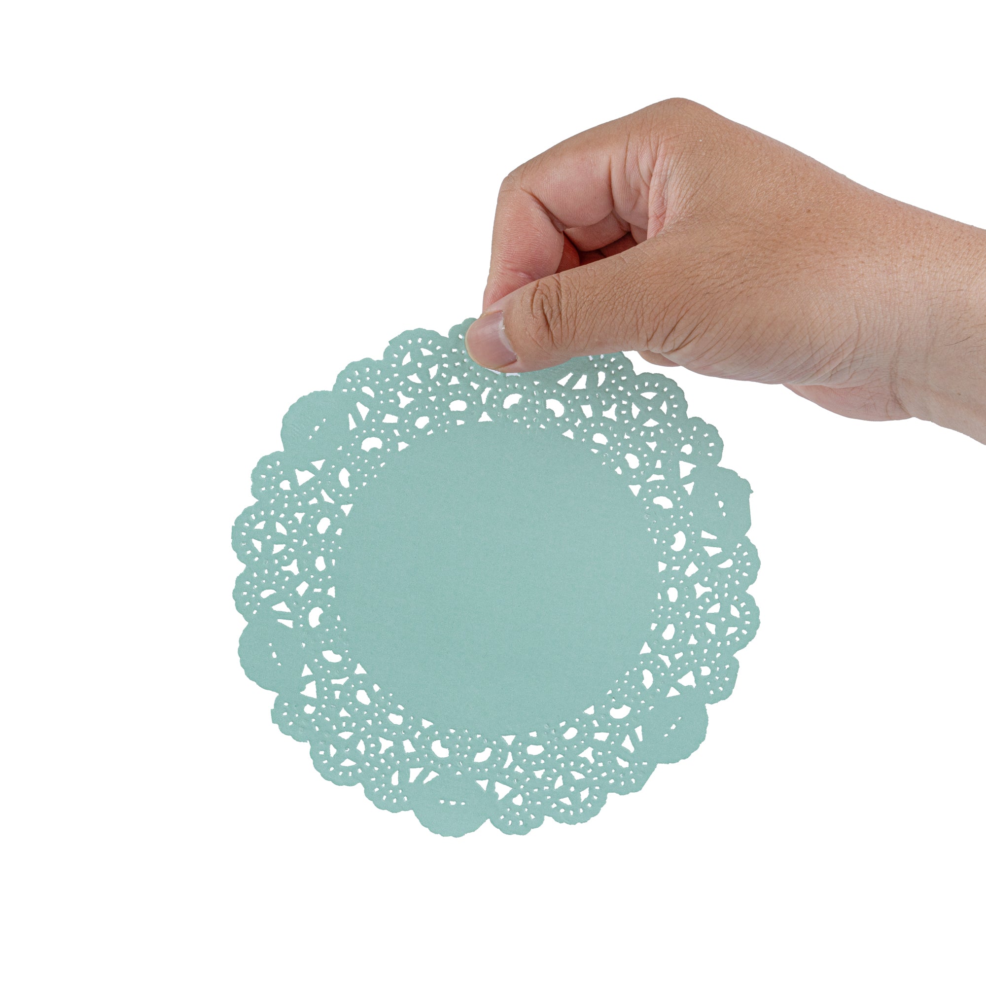 Enhance your dessert displays with our Pastry Tek Round Teal Paper Doilies. These elegant paper doilies add a refined touch to any table setting, making your desserts look even more irresistible. Crafted from high-quality paper, this lace doily is designed to withstand the demands of busy bakeries and catered luncheons without tearing or losing structural integrity. The intricate lace-like details of these table doilies not only increase the visual appeal of your food presentations but also serve as functional barriers by protecting surfaces and absorbing moisture. The teal colored paper doilies perfectly complement a wide range of table settings and themes, making them ideal for various events and occasions. These small doilies are disposable, eradicating the hassle of post-event cleanup and offering a convenient, time-saving solution for busy hosts and food establishments. Measuring 6 inches in diameter, these doilies are perfect for cupcakes, petit fours, macarons, and other small treats. Sold in a 100 count box.
