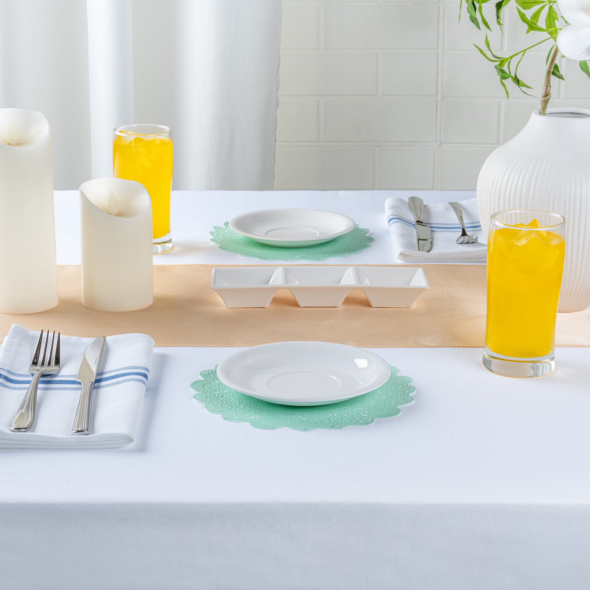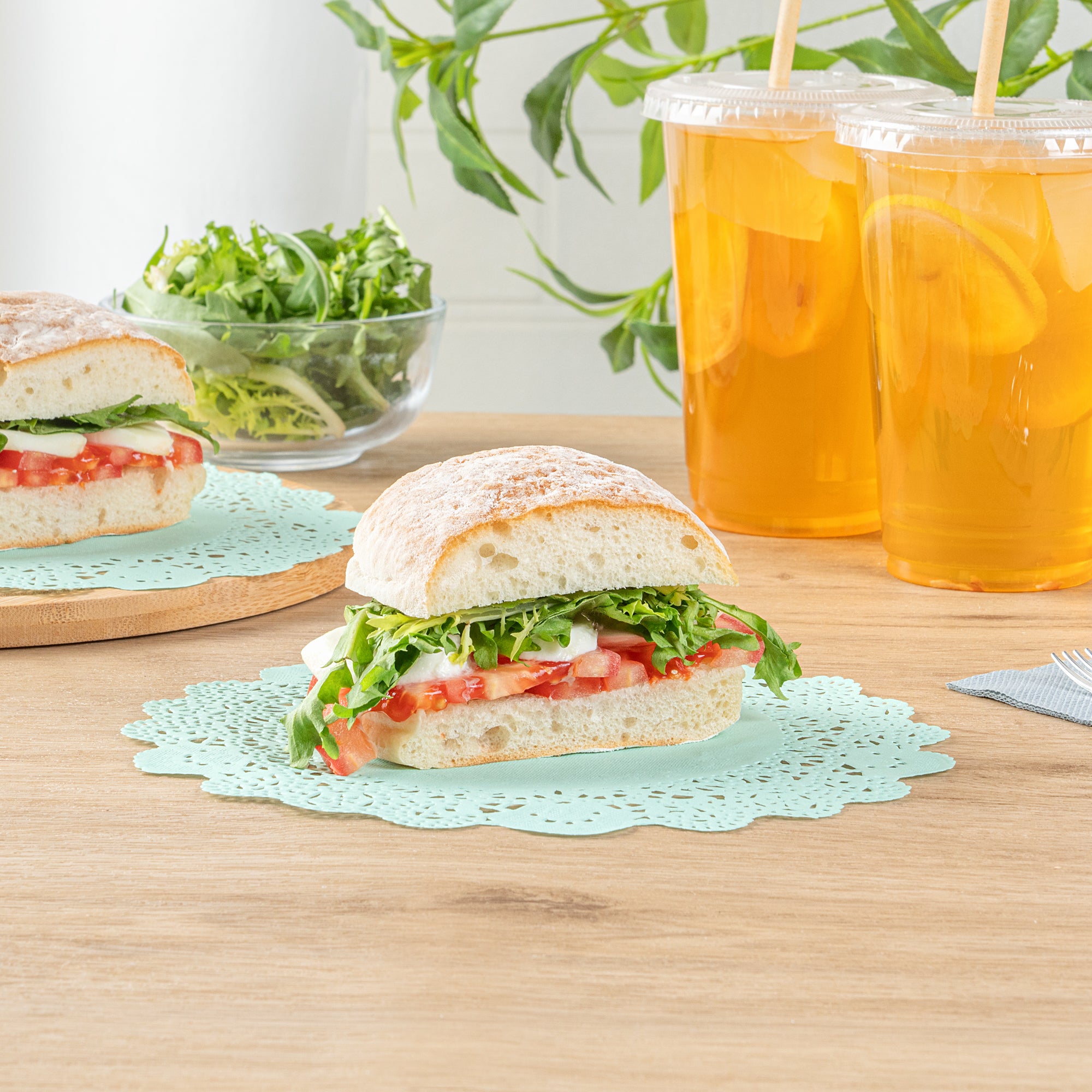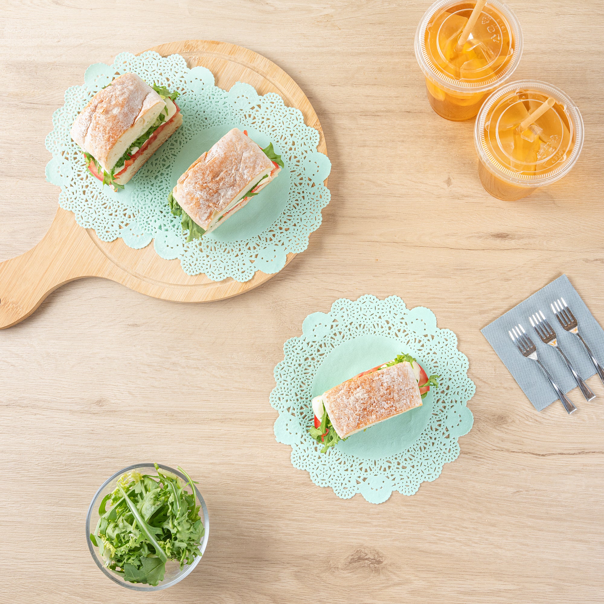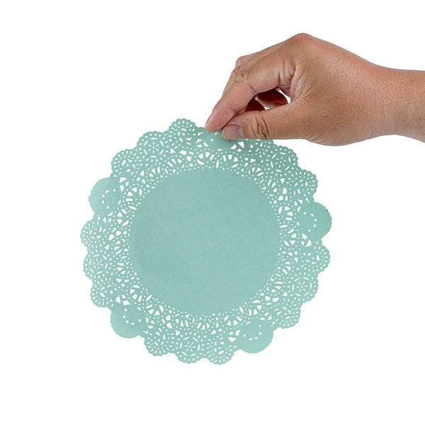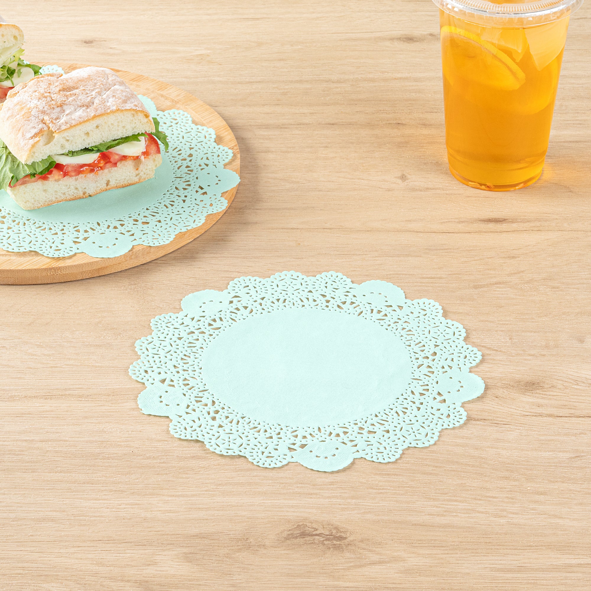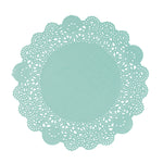 Elevate the elegance of your dessert displays with our Pastry Tek Round Teal Paper Doilies. Crafted from high-quality paper, these lace doilies provide durability while beautifully showcasing desserts at bakeries or catered luncheons without tearing or losing their structural integrity. Featuring intricate lace-like details, these table doilies not only increase the visual appeal of food presentations but also serve as functional barriers, protecting surfaces and absorbing moisture. The versatile teal finish of these colored paper doilies allows them to complement a wide range of table settings and themes, making them an ideal choice for various events and occasions. Designed for convenience, these disposable paper doilies eradicate the hassle of post-event cleanup, offering a time-saving solution for busy hosts and food establishments. Perfect for use under cupcakes, petit fours, macarons, and other small treats, these small doilies enhance the presentation of your delectable creations. Measuring 8 inches in diameter, these lace doilies fit seamlessly into your foodservice setup. Sold in a 4,000 count box.