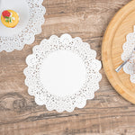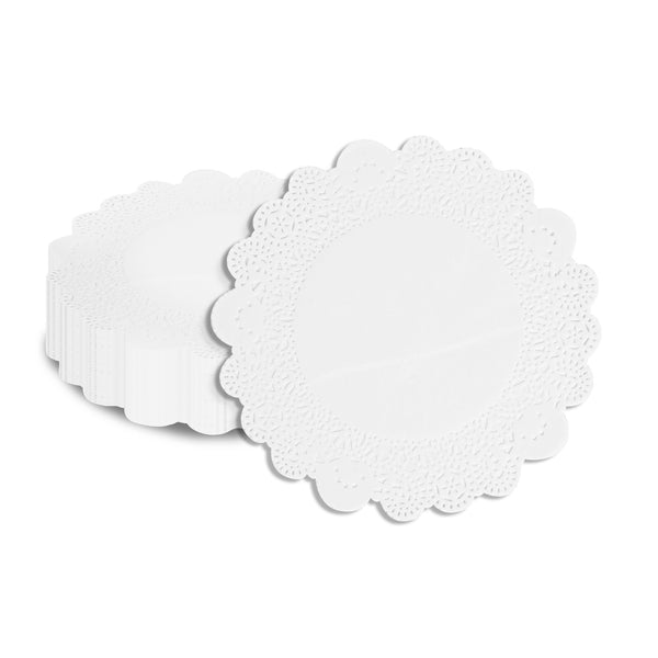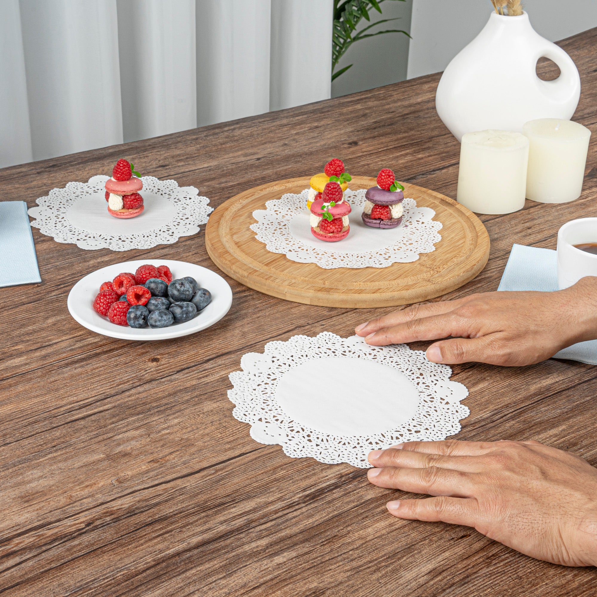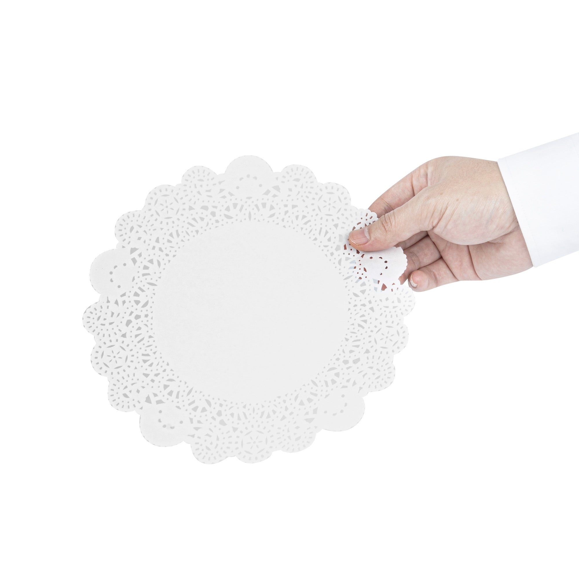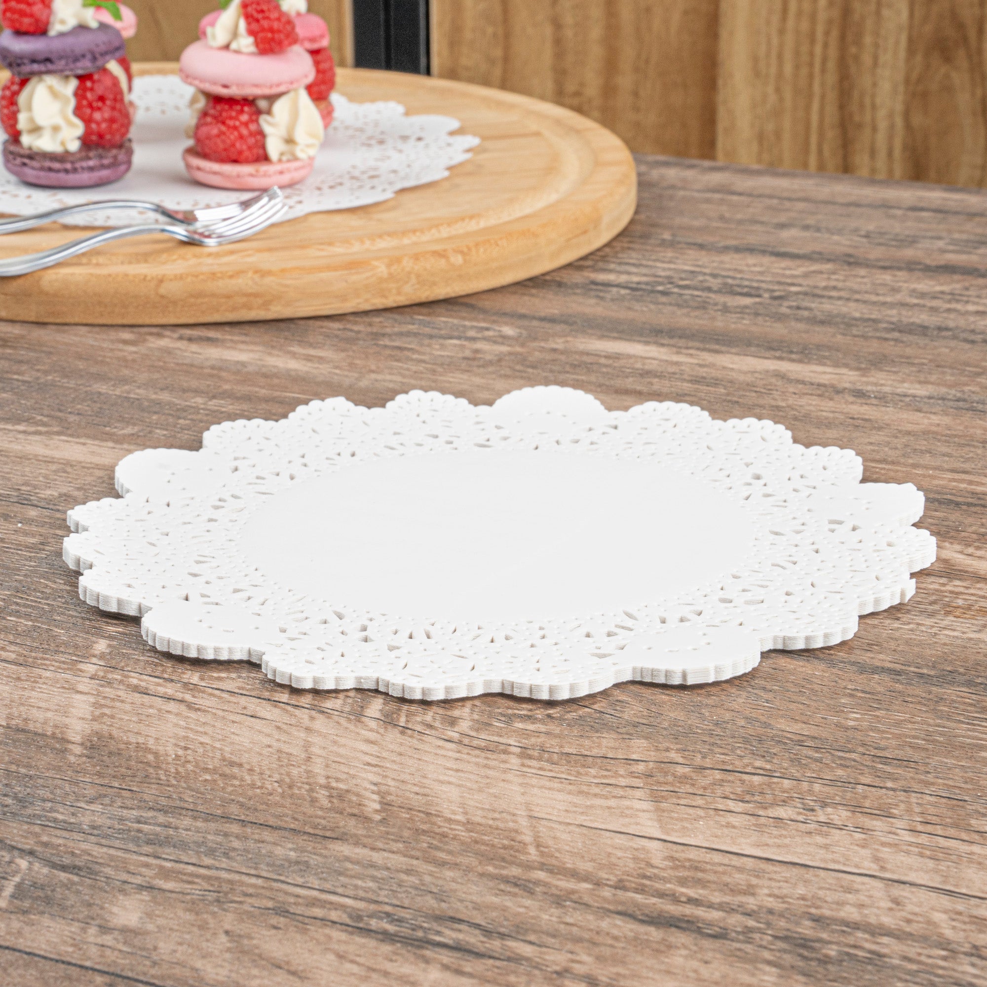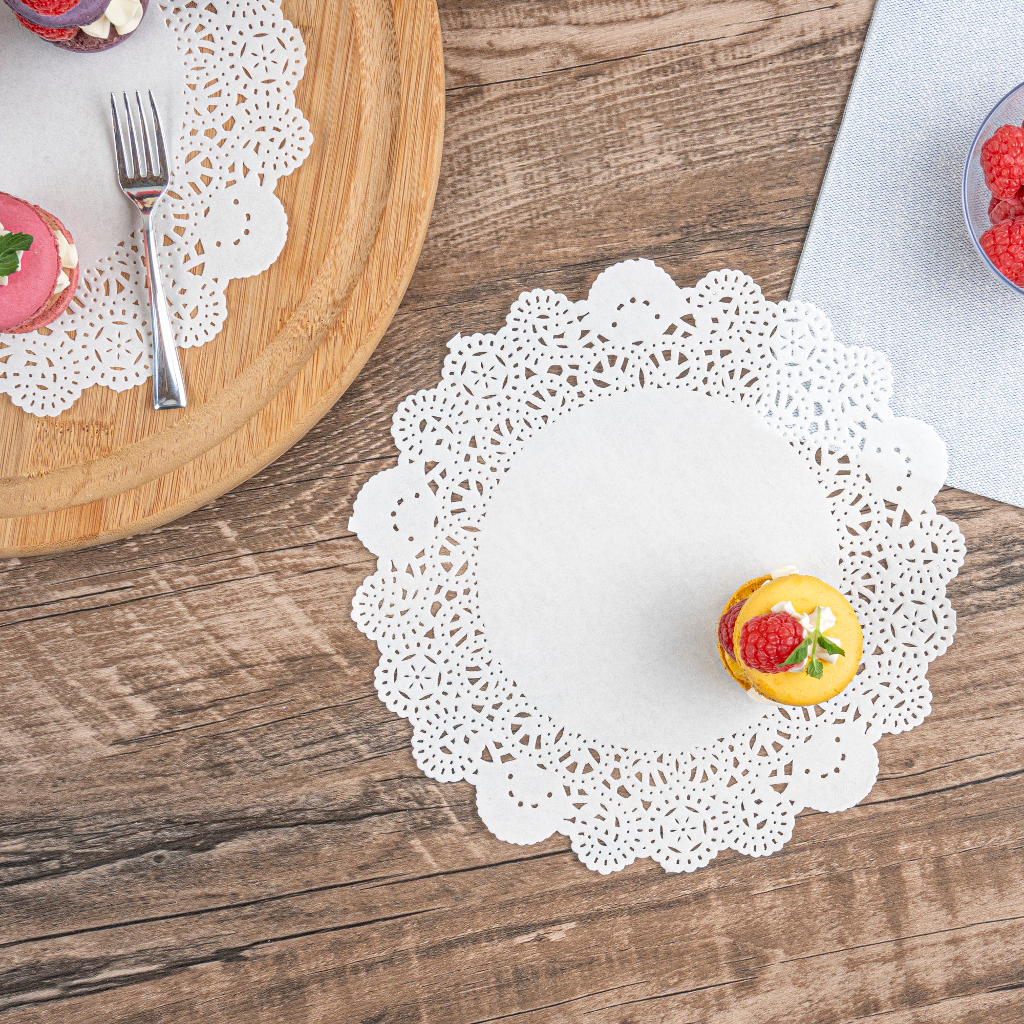 Enhance your culinary presentation with elegance and ease. Pastry Tek Lace Design Paper Doilies feature intricate lace-like details that elevate the look of food displays and tablescapes, providing a sophisticated touch with paper doilies. Measuring 8 inches in diameter, these versatile lace paper doilies are ideal for a variety of serving platters and plates, accommodating diverse menus. These disposable doilies are designed for convenience, allowing for quick cleanup after events, thus saving time and labor costs. Additionally, their cold and hot food-friendly construction ensures they are suitable for serving everything from chilled desserts to warm pastries. Upgrade your presentation repertoire with these versatile doilies and impress your guests with style and sustainability. Each order includes 100 Pastry Tek Lace Design Paper Doilies.