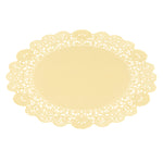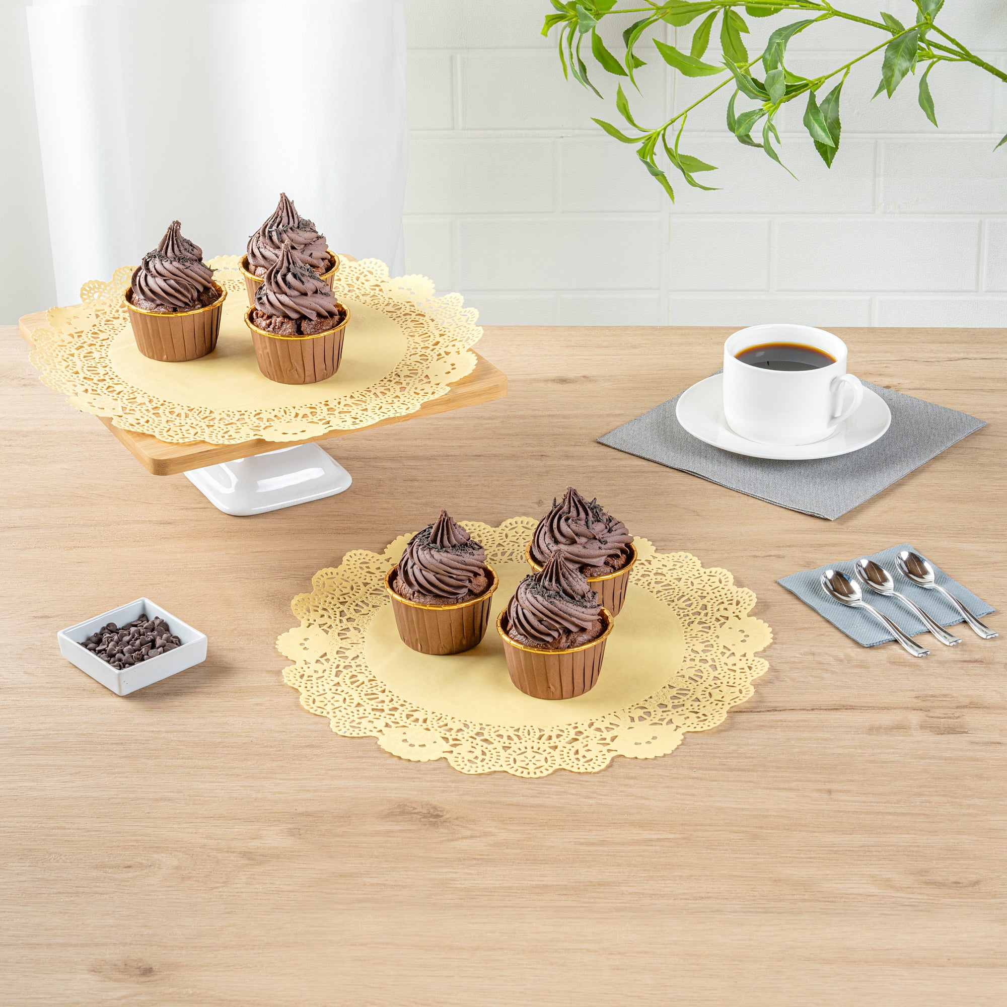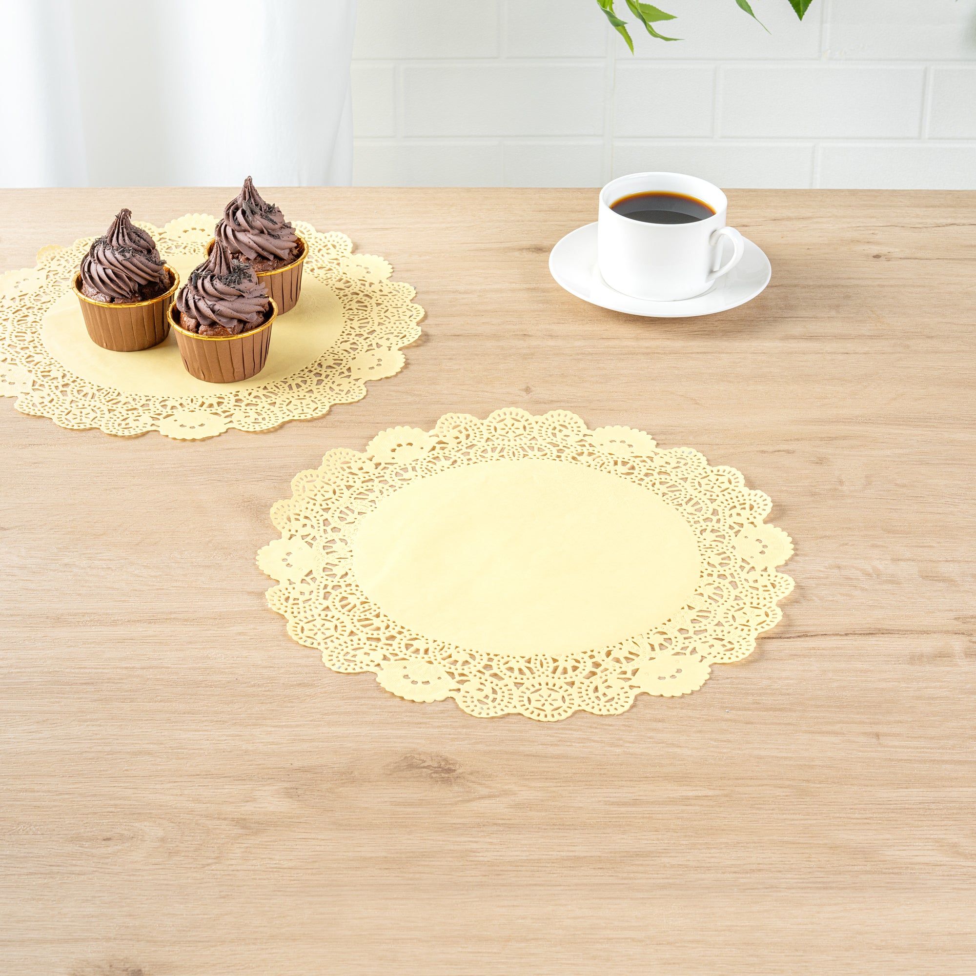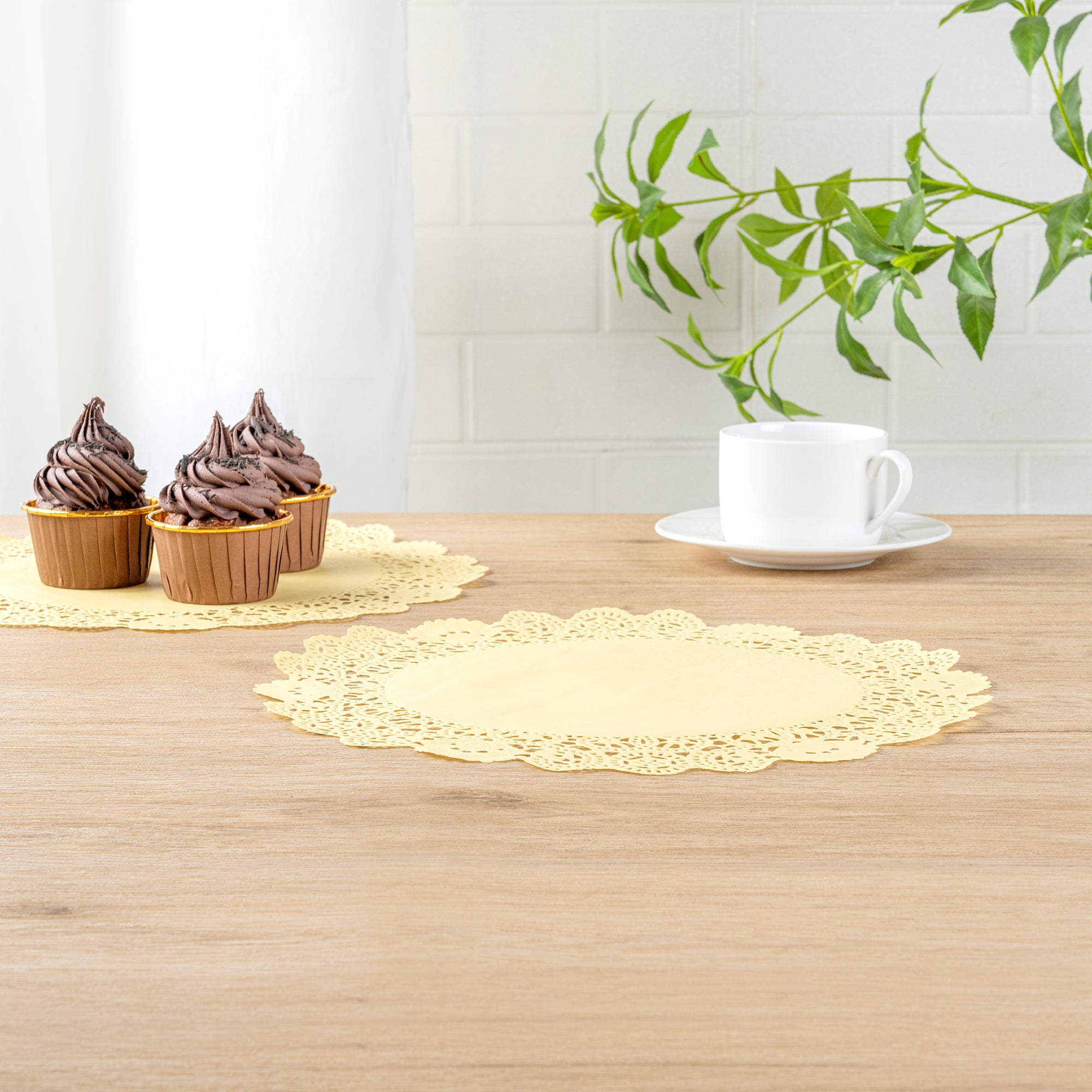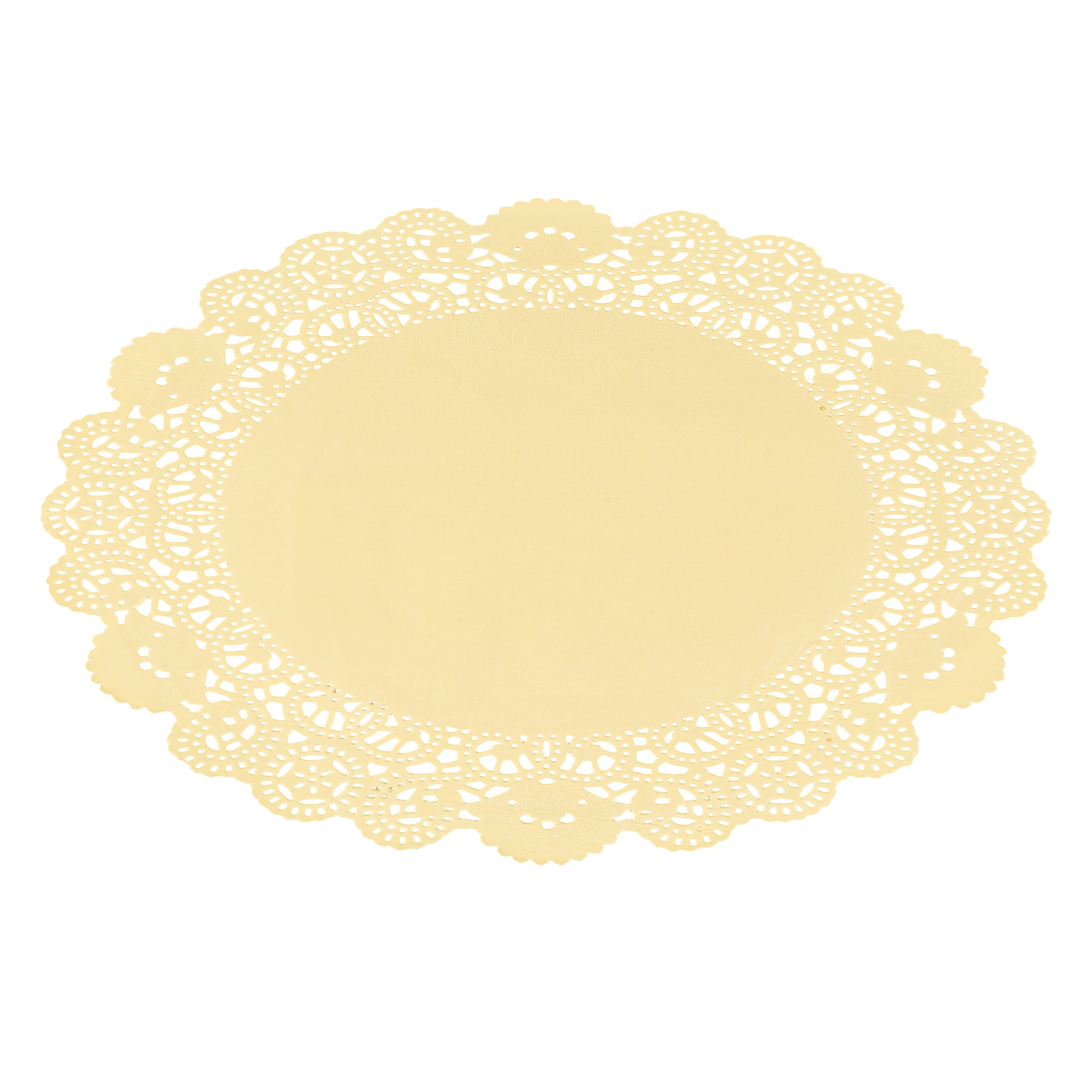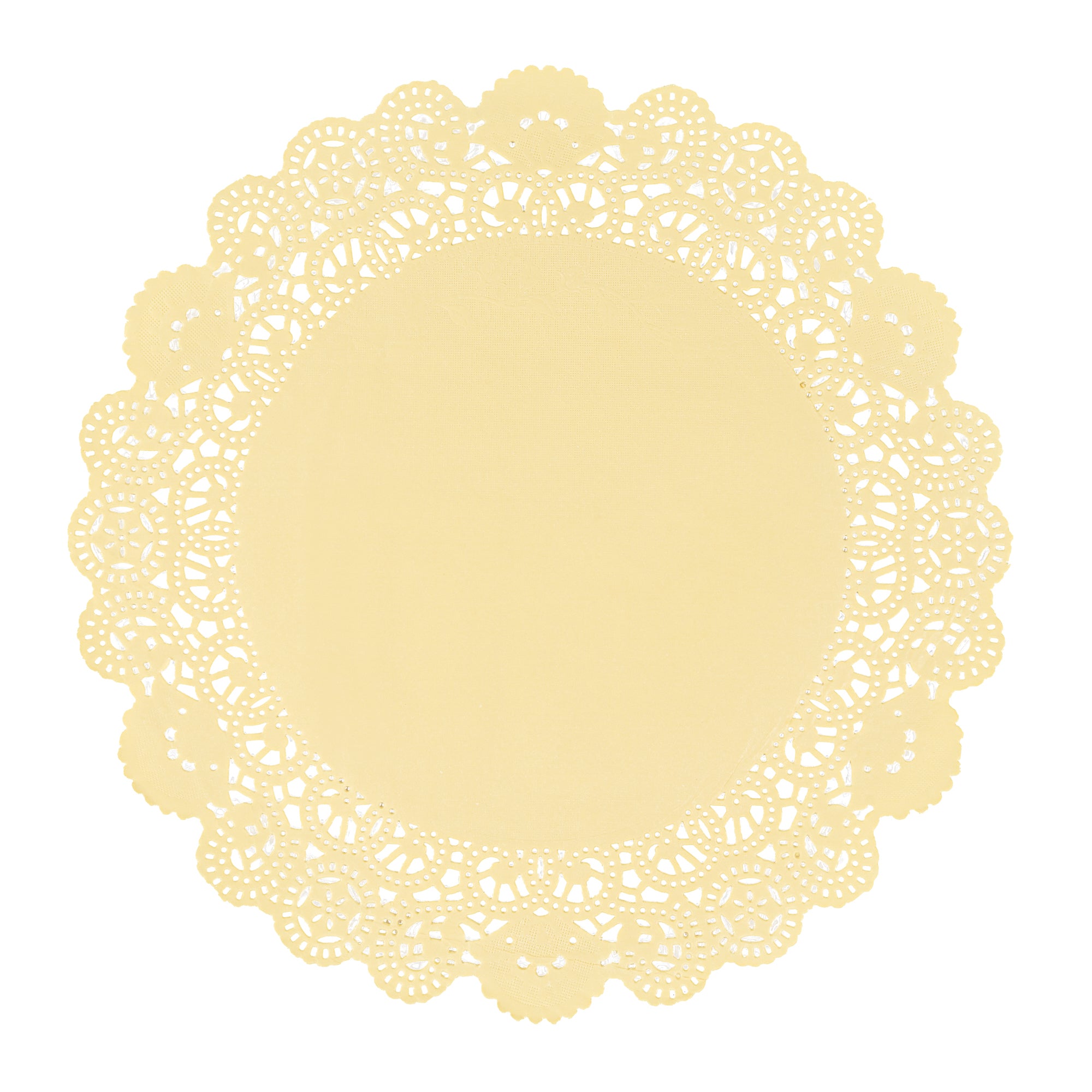 Elevate your dessert displays with our Pastry Tek Round Yellow Paper Doilies. Crafted from high-quality paper, these lace doilies provide exceptional durability, allowing you to showcase desserts at bakeries or catered luncheons without tearing or losing structural integrity. Featuring intricate lace-like details, these small doilies enhance the visual appeal of food presentations while serving as functional barriers, protecting surfaces and absorbing moisture. The vibrant yellow finish of these colored paper doilies is versatile, complementing a wide range of table settings and themes, making them an ideal choice for various events and occasions. Designed for convenience, these disposable doilies eradicate the hassle of post-event cleanup, offering a time-saving solution for busy hosts and food establishments. Perfect for use under cupcakes, petit fours, macarons, and other small treats, these table doilies ensure a charming and elegant presentation. Measuring 12 inches in diameter, these lace doilies fit seamlessly into any display. Sold in a 100 count box.