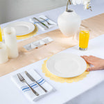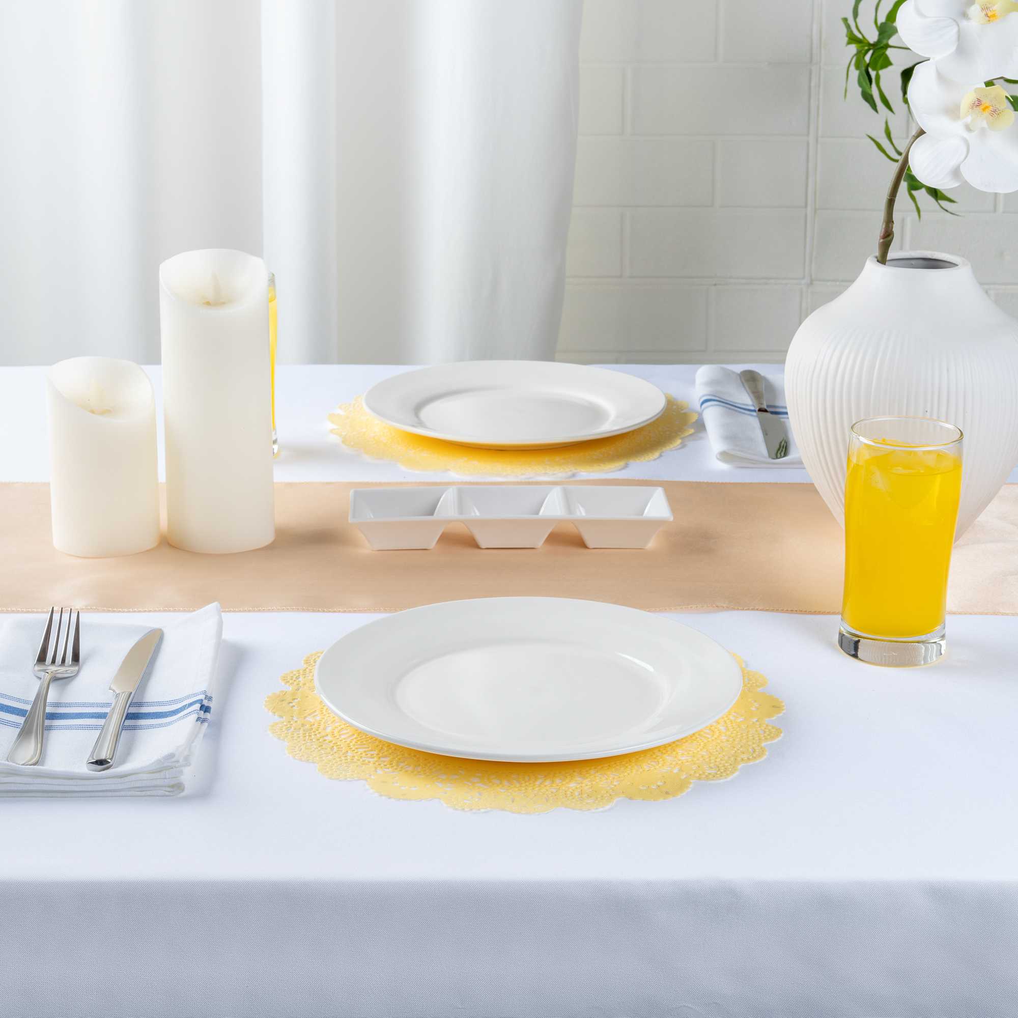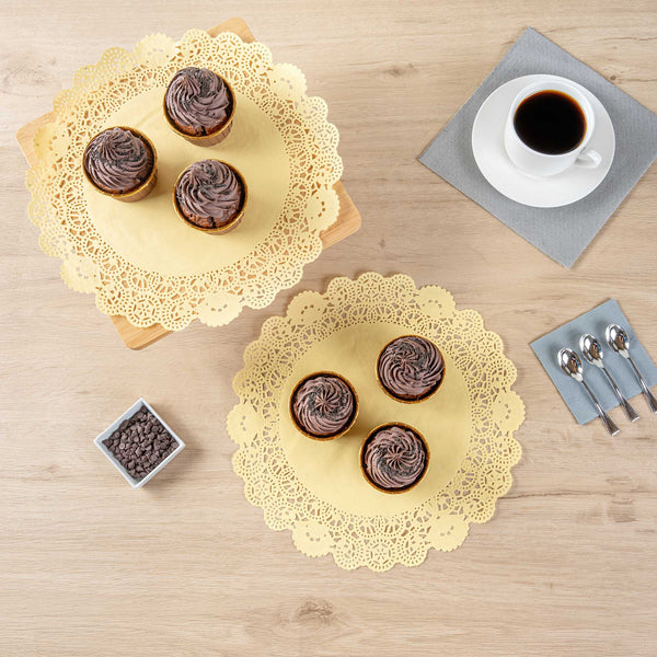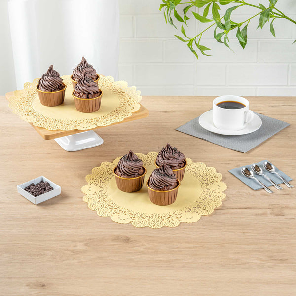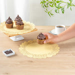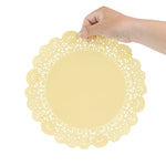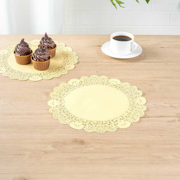Elevate your dessert displays with our Pastry Tek Round Yellow Paper Doilies. Crafted from high-quality paper, these lace doilies provide exceptional durability, allowing you to showcase desserts at bakeries or catered luncheons without tearing or losing structural integrity. Featuring intricate lace-like details, these small doilies enhance the visual appeal of food presentations while serving as functional barriers, protecting surfaces and absorbing moisture. The vibrant yellow finish of these colored paper doilies is versatile, complementing a wide range of table settings and themes, making them an ideal choice for various events and occasions. Designed for convenience, these disposable doilies eradicate the hassle of post-event cleanup, offering a time-saving solution for busy hosts and food establishments. Perfect for use under cupcakes, petit fours, macarons, and other small treats, these table doilies ensure a charming and elegant presentation. Measuring 12 inches in diameter, these lace doilies fit seamlessly into any display. Sold in a 4,000 count box.