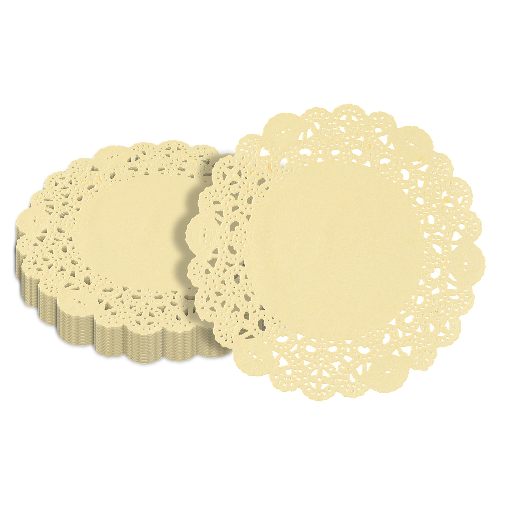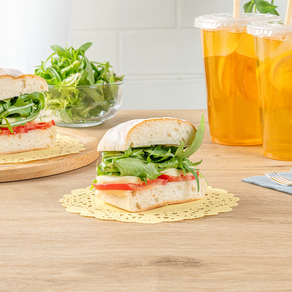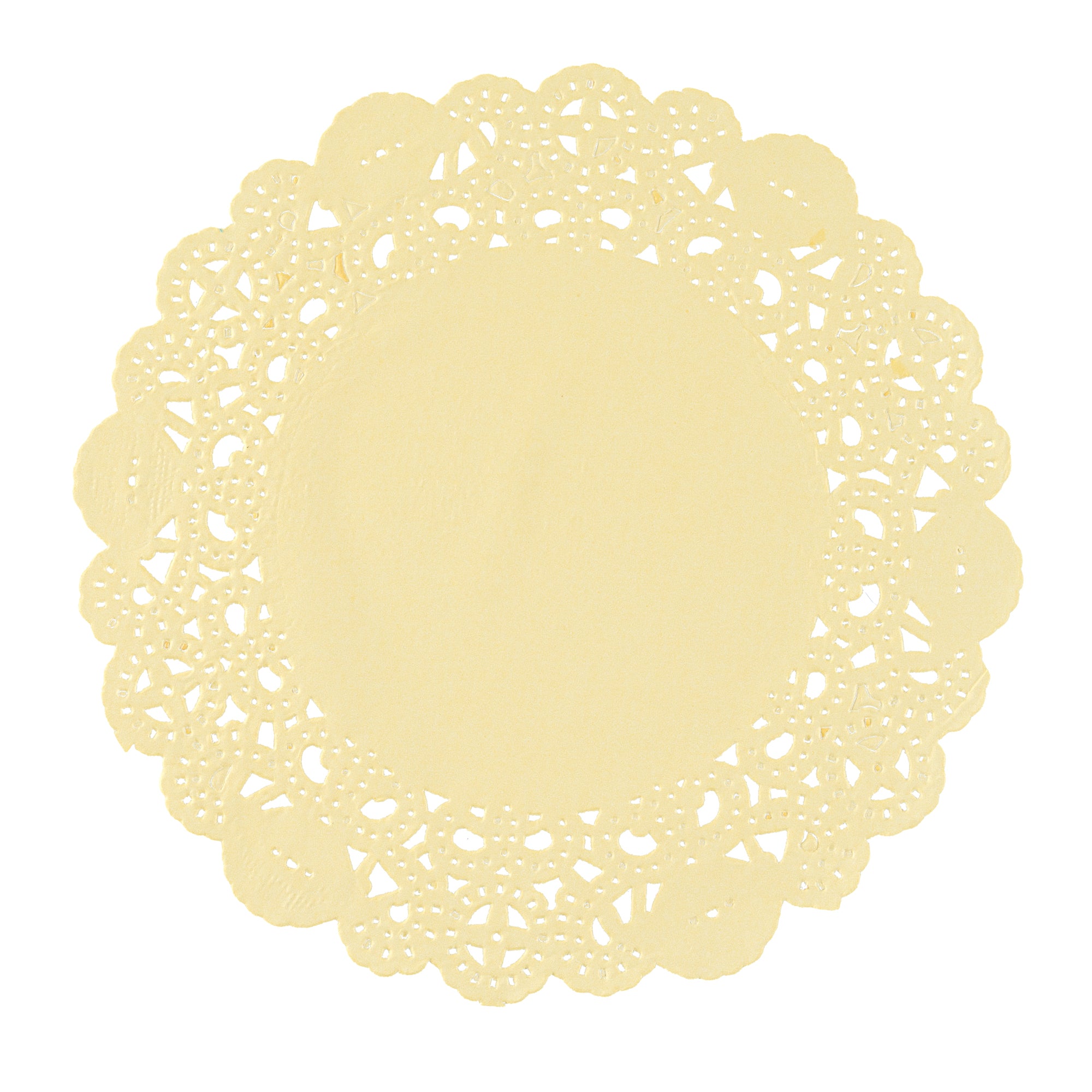 Elevate your dessert displays with our Pastry Tek Round Yellow Paper Doilies, designed to add an elegant touch to any presentation. Crafted from high-quality paper, these lace doilies provide durability while showcasing desserts at bakeries or catered luncheons without tearing or losing their structural integrity. Featuring intricate lace-like details, these table doilies not only enhance the visual appeal of food presentations but also serve as functional barriers, protecting surfaces and absorbing moisture. The vibrant yellow finish of these colored paper doilies complements a wide range of table settings and themes, making them ideal for various events and occasions. Disposable by design, these small doilies eradicate the hassle of post-event cleanup, offering a convenient and time-saving solution for busy hosts and food establishments. Perfect for use under cupcakes, petit fours, macarons, and other small treats, these paper doilies measure 6 inches in diameter, ensuring they fit seamlessly into your dessert displays. Sold in a 4,000 count box.