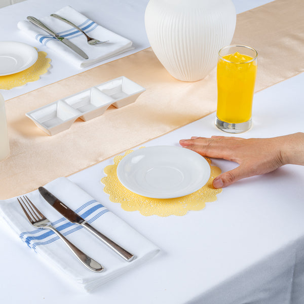- Lace design adds an elegant and decorative touch to table settings