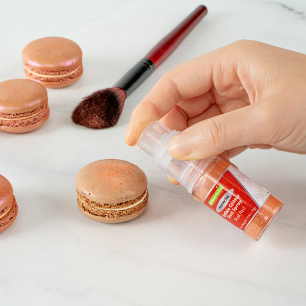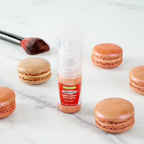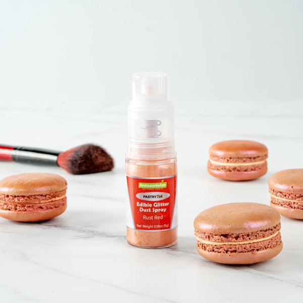 Add a special touch to your sweet treats using our Pastry Tek 5-Gram Rust Red Edible Glitter Dust Spray. This glitter spray is simply edible to dash on any cake or beverage. Plus, this edible glitter spray is water-soluble to blend into wet ingredients with ease. With a non-aerosol pump construction, this edible glitter spray for cakes has an easy-to-use design to effortlessly decorate large or small edible projects. This shimmer spray for cakes is FDA-approved, kosher-certified, and vegan to consume without worry and meet dietary needs. To maintain its high quality, store it in a cool, dry environment away from direct sunlight. With a rustic red shimmer finish, this glitter spray makes any cake or cocktail stand out. This edible glitter spray has a capacity of 5 grams, an ideal addition for cafes, bakeries, or bars. Sold in a 1 count box.