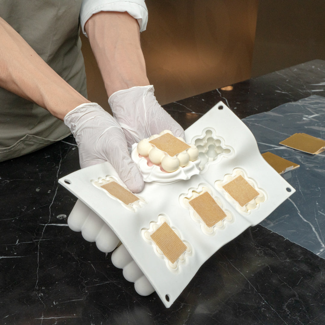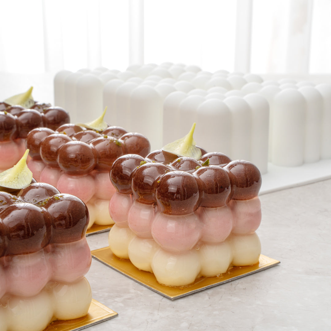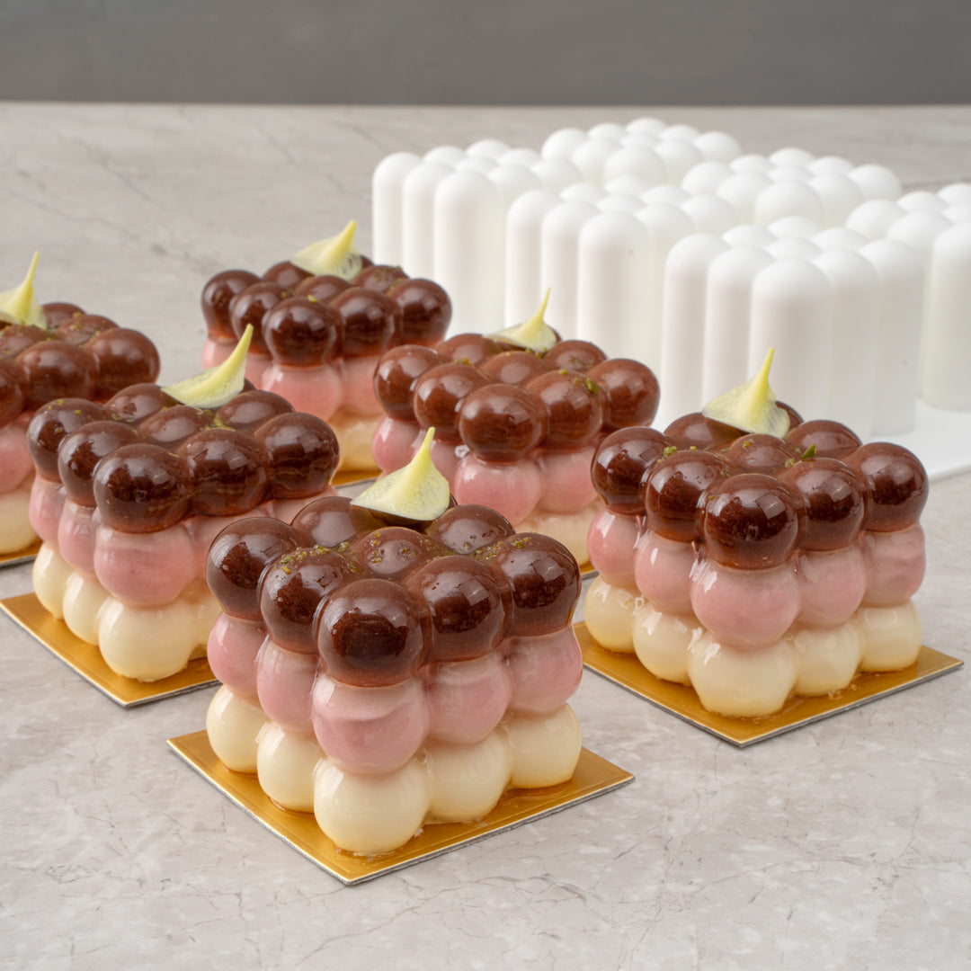 - Bubble cube design brings a unique touch to cakes, tarts, and other sweets