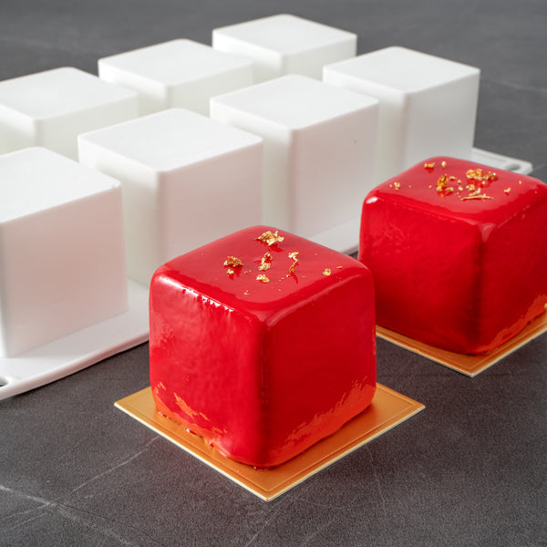 - Cube design brings a unique touch to cakes, tarts, and other sweets