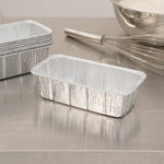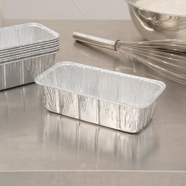 Bake multiple banana bread loaves with our Pastry Tek Silver Aluminum Bread Loaf Pans. The aluminum construction of these banana bread pans is strong and sturdy to hold up to 2 pounds of batter. These aluminum loaf pans are oven-safe so you can bake pumpkin bread, pound cake, and more at your bakery or restaurant. To easily store your baked goods, these disposable loaf pans are freezer-safe. Featuring a stackable design, these foil bread pans maximize the space used in your storage area. For a quick and simple cleanup, these loaf pans are conveniently recyclable. These loaf baking pans measure 8.5 inches long by 4.25 inches wide by 2.5 inches tall. Sold in a 25 count box.