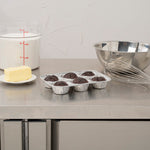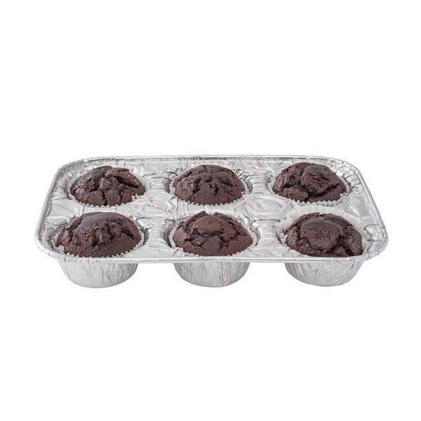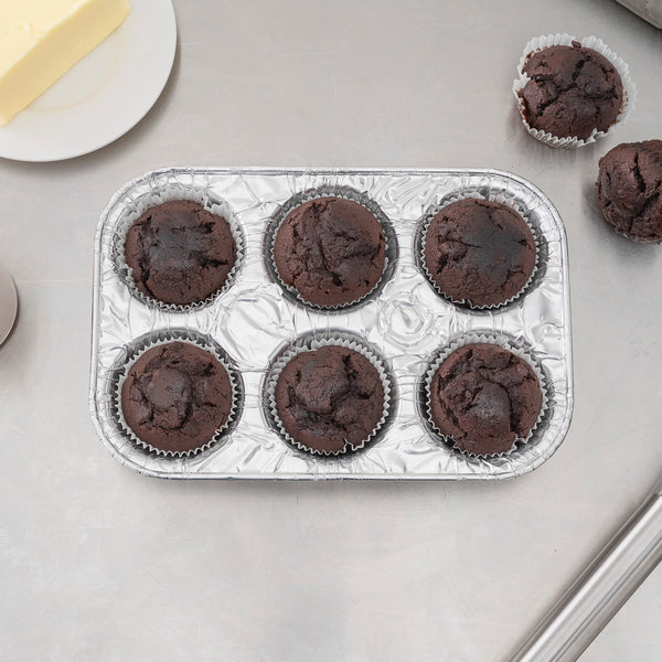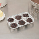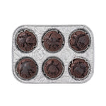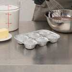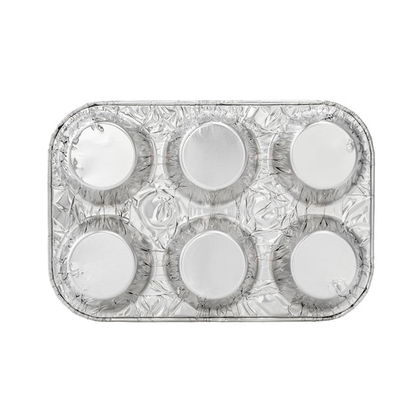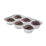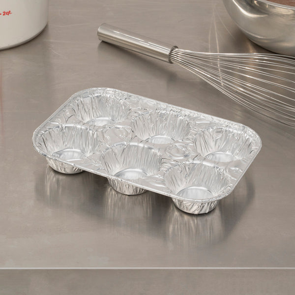 Enhance your bakery's productivity with versatile baking tools. The Pastry Tek Multi-Compartment 6 Cup Muffin Pan features a 6-compartment design that maximizes baking efficiency, allowing you to bake multiple treats at once, making it an essential asset for busy kitchens. Constructed from premium aluminum, this foil muffin tray is ideal for baking snacks in the oven or storing desserts in the freezer, offering exceptional temperature adaptability for both hot and cold recipes. Each cavity of this disposable muffin pan has a 3.25-ounce capacity, perfect for creating consistently sized single-serve desserts that delight your customers. Measuring 9.56 inches in length and 6.5 inches in width, this pan provides ample space while maintaining a compact footprint. Elevate your baking operations with this recyclable, cold and hot food-friendly solution that supports your need for efficiency and quality. Each order includes 25 Pastry Tek Multi-Compartment 6 Cup Muffin Pans.