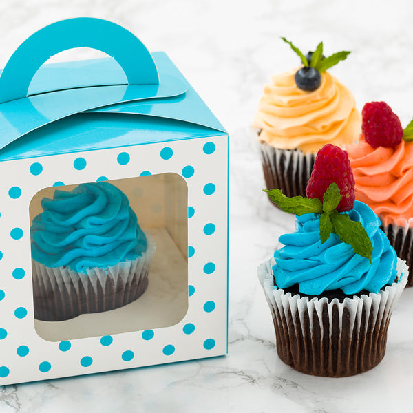 These individual cupcake containers are designed with a sturdy handle to carry your delicious baked goods with ease. Transport with optimal security!