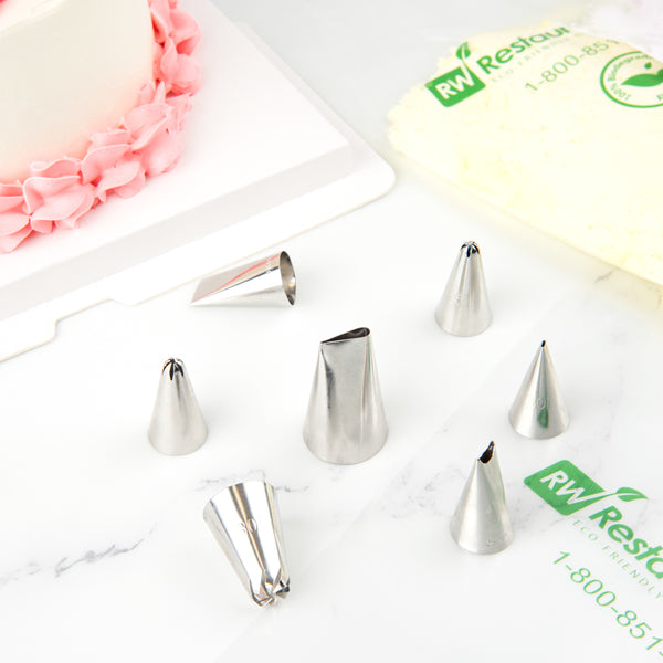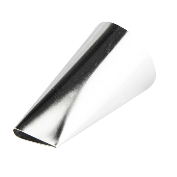 Make creative dessert presentations with our Pastry Tek #124 Petal Piping Tip. With a teardrop shape tip, this versatile cake nozzle creates luscious flower petals, dramatic ruffles, drapes, swags, bows, and more. Crafted from high-quality stainless steel, this cake decorating tip is long-lasting and dishwasher-safe. Use this flower decorating tip to design large ruffles on the border of decadent brownies or add full tulips on top of cupcakes from your bakery. This pastry bag tip measures 1 inch wide and 1.7 inches tall and ships in a 1 count box.
