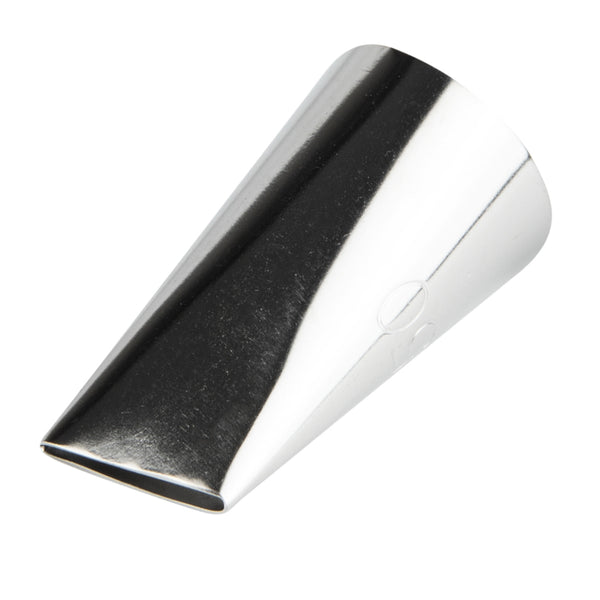 Design delicate frosting flowers with our Pastry Tek #150 Carnation Petal Piping Tip. Made from high-quality stainless steel, this cake decorating tip is conveniently long-lasting and dishwasher-safe. With a thin oval tip, this versatile pastry bag tip easily creates frosting flower petals, dramatic ruffles, drapes, swags, bows, and more. Use this flower icing tip to design delicious full frosting carnations on a coconut cupcake or add dramatic ruffles on the border of a double chocolate chip cookie from your bakery. This icing bag tip measures 0.7 inches wide by 1.2 inches tall and ships in a 1 count box.