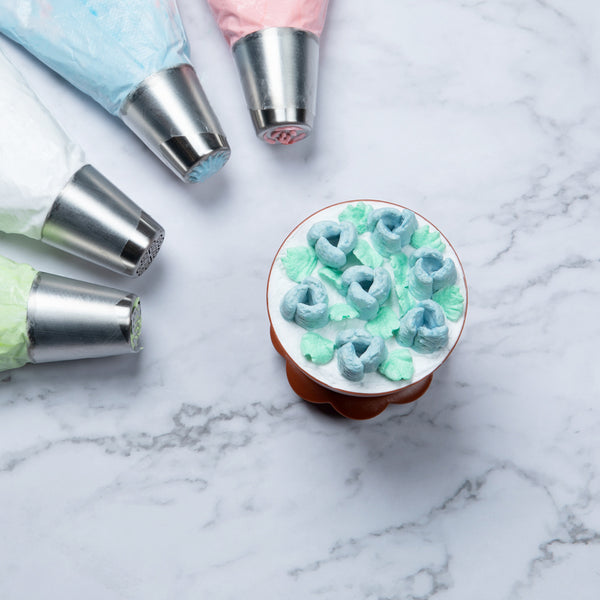 Pipe detailed buttercream tulips with ease using our Pastry Tek Stainless Steel #18 Russian Piping Tip. With a Russian tip design, this cake nozzle allows you to pipe complete tulips on cakes or cupcakes to streamline your dessert decorating process. This cupcake frosting tip is constructed from durable stainless steel that is specially designed to withstand repeated use without bending out of shape. Pair this tulip Russian piping tip with our selection of piping bags and Russian piping tips to easily decorate made-to-order desserts. Conveniently safe for commercial dishwasher use, this dent-resistant Russian cake nozzle provides you with a hassle-free way to remove frosting from the tip. This corrosion-resistant frosting tip measures 1.5 inches in diameter by 1.75 inches in height. Shipped in a 1 count box.