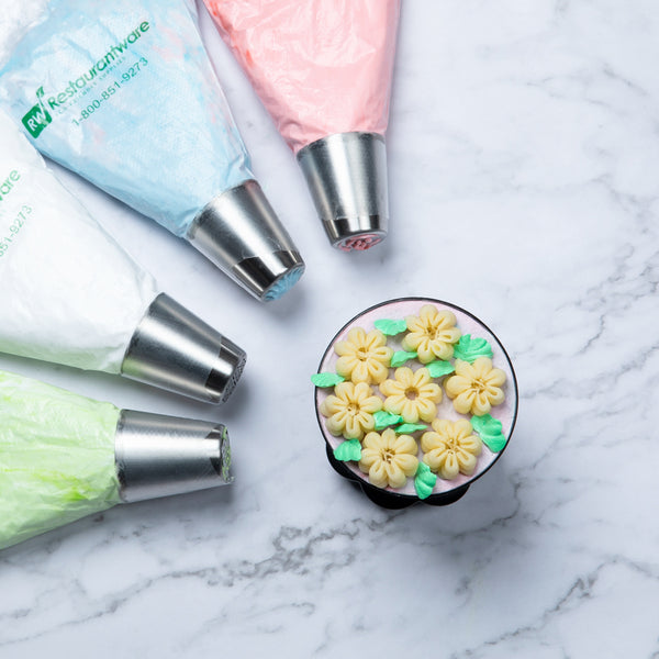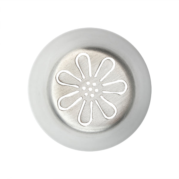 Give your cookies and cakes frosted flowers with our Pastry Tek Stainless Steel #2 Russian Piping Tip. Great for piping beautiful daisies, this flower piping tip adds blooming flowers to your cupcakes. This cake nozzle is corrosion-resistant, dent-resistant, and reusable so you can decorate pastries over and over again. Match this icing piping tip with our pastry bags and Russian couplers to create floral borders on your wedding or birthday cakes. To easily wash nozzles after decorating desserts, this icing piping tip is conveniently dishwasher-safe. This icing decorating tip measures 1.5 inches in diameter by 1.75 inches in height. Sold in a 1 count box.