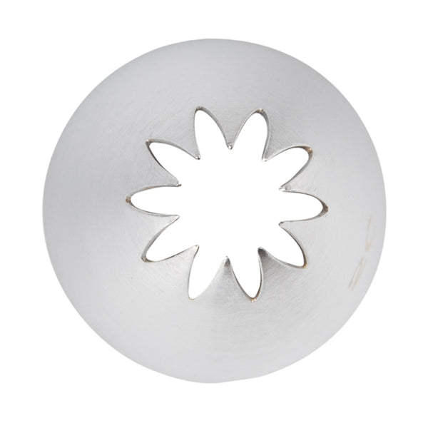 Give your baked goods a show-stopping makeover with this Pastry Tek Stainless Steel #2C Drop Flower Piping Tip. Featuring a large 10-pointed design, this cupcake icing tip produces mesmerizing rosettes, one-squeeze flowers, and complex borders with ease. Ideal for piping frosting onto cakes, cookies, cupcakes, brownies, and more, this #2C piping tip is an excellent addition to your bakery's cake decorating supplies. Constructed from food-safe stainless steel, this cake decorating tip is impressively strong and dent-resistant. Each of these drop flower piping tips measures 1 inch wide by 1.5 inches tall. Shipped in a 1 count box.
