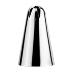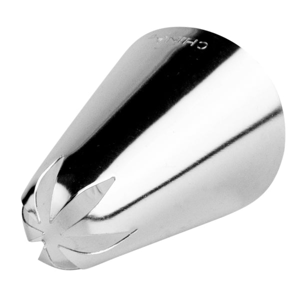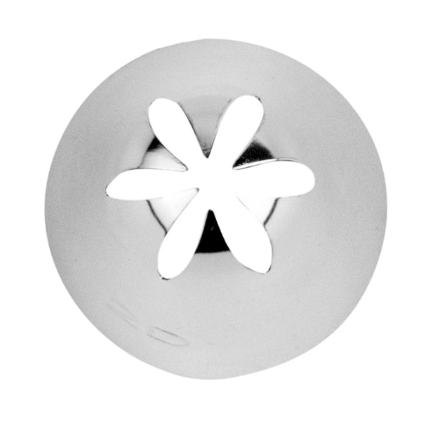 Create alluring flowers and bold borders with this Pastry Tek Stainless Steel #2D Drop Flower Piping Tip. Featuring a 6-pointed design, this large drop flower piping tip can be used to top cupcakes with beautiful rose-swirl details - or to cover cakes with eye-catching floral accents. Use this icing tip to add large hydrangea-like one-squeeze flowers, impressive swirls, dynamic ruffled borders, and more! Crafted from high-quality stainless steel, this dent-resistant cake piping tip is incredibly strong and designed to withstand long-term use in commercial kitchens and bakeries. Each of these decorating tips measures 0.9 inches in width by 1.5 inches in height. Shipped in a 1 count box.