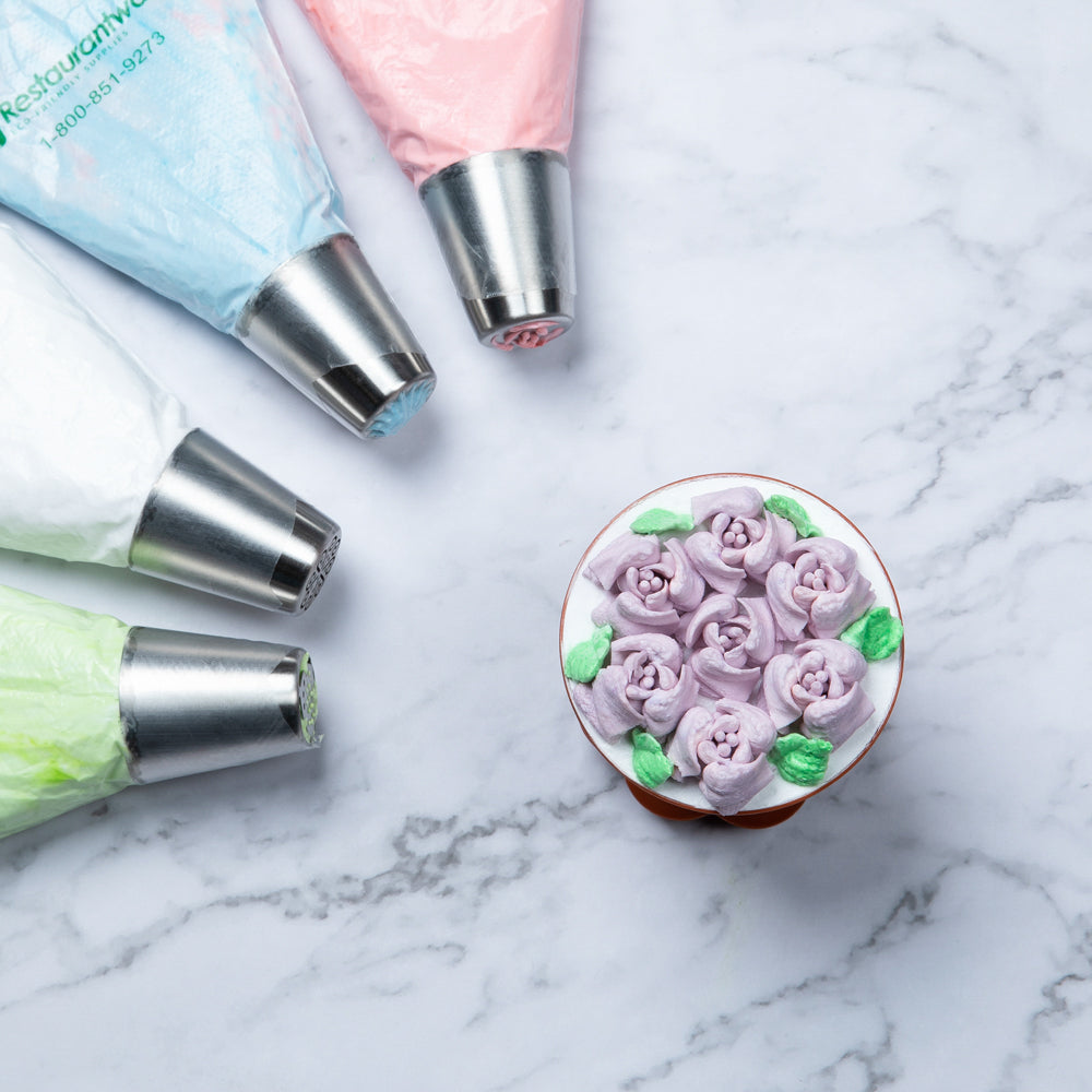 Beautify your pastries with our Pastry Tek Stainless Steel #32 Russian Piping Tip. Perfect for enhancing the look of your wedding cakes, this frosting tip creates charming rosebuds to catch the eyes of potential customers. Coordinate this cake piping tip with our piping bags and Russian tip couplers to effortlessly change piping while decorating. Crafted from stainless steel, this cupcake nozzle is dent-resistant, corrosion-resistant and reusable so you can decorate cakes everyday at your bakery, restaurant, or cafe. This icing piping nozzle is dishwasher-safe for a hassle-free way to clean up after service hours. Measuring 1.5 inches in diameter and 1.75 inches in height, this cake icing nozzle squeezes out perfectly-sized rosebuds. Sold in a 1 count box.