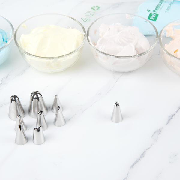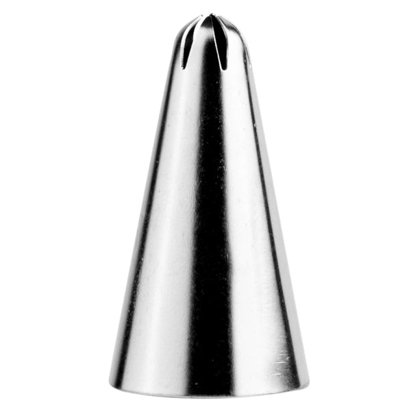Top cakes and cupcakes with beautifully textured decorations using this Pastry Tek Stainless Steel #35 Closed Star Piping Tip. Designed with a 6-pointed closed star opening, this piping bag nozzle makes it easy to produce deeply grooved shells, ridged fleur-de-lis, one-squeeze stars, bold ruffles, stunning rosettes, and more! Use this piping tip to add small bursts of colorful buttercream frosting to a batch of cupcakes, or to add swirled royal icing accents to a birthday cake. Crafted from food-safe stainless steel, our professional cake decorating tips are great for commercial kitchens, bakeries, and catering companies. Each of these cupcake frosting tips measures 0.7 inches in width by 1.2 inches in height and can be used with most standard-sized piping bags and couplers. Sold in a 1 count box.