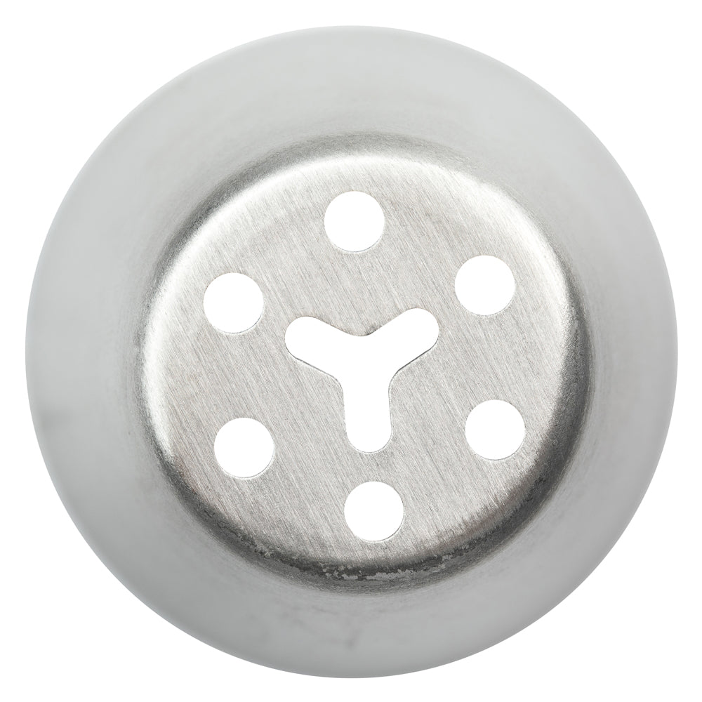 Pipe intricate flowers without lines or blemishes using our Pastry Tek Stainless Steel #42 Russian Piping Tip. With a Russian tip design, this cupcake nozzle allows you to frost beautiful flowers along the edges of cakes or on the center of cupcakes with ease. This stainless steel piping tip is corrosion-resistant and dent-resistant to ensure the nozzle keeps its shape for long-lasting use at your foodservice establishment. Conveniently dishwasher-safe, this piping tip for cupcakes eliminates the hassle of removing frosting from the nozzle after each use. Pair this Russian cake tip with our piping bags and Russian piping tips to easily decorate made-to-order cakes, pies, or pastries. This flower piping tip measures 1.5 inches in diameter by 1.75 inches in height. Shipped in a 1 count box.