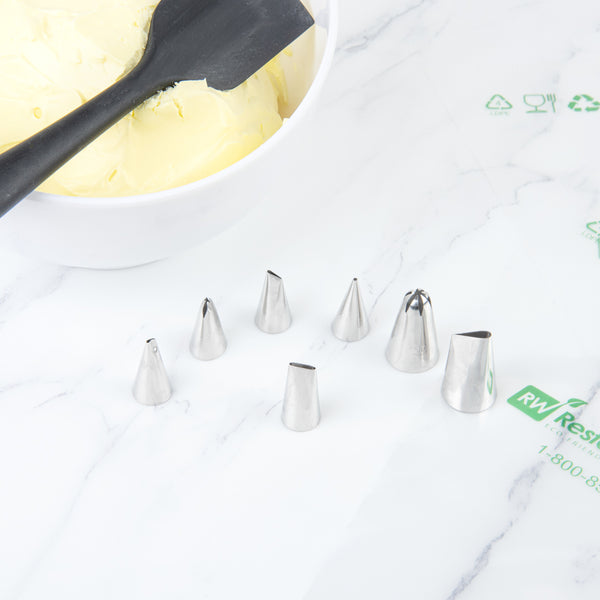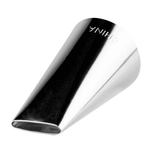 Perfect the basics with this Pastry Tek Stainless Steel #45 Basketweave Piping Tip. Featuring a smooth oval-shaped opening, this icing tip is great for producing silky stripes of buttercream frosting - or creating an eye-catching basket weave icing pattern. Use this #45 icing tip to draw bold borders, smooth ribbons, dramatic zig-zags, linear stripes, and more! Made from high-quality stainless steel, this professional cupcake icing tip is designed to withstand long-term use in commercial kitchens and bakeries. This piping tip measures 0.7 inches wide by 1.2 inches tall, and works with most standard-sized frosting bags and couplers. Shipped in a 1 count box.