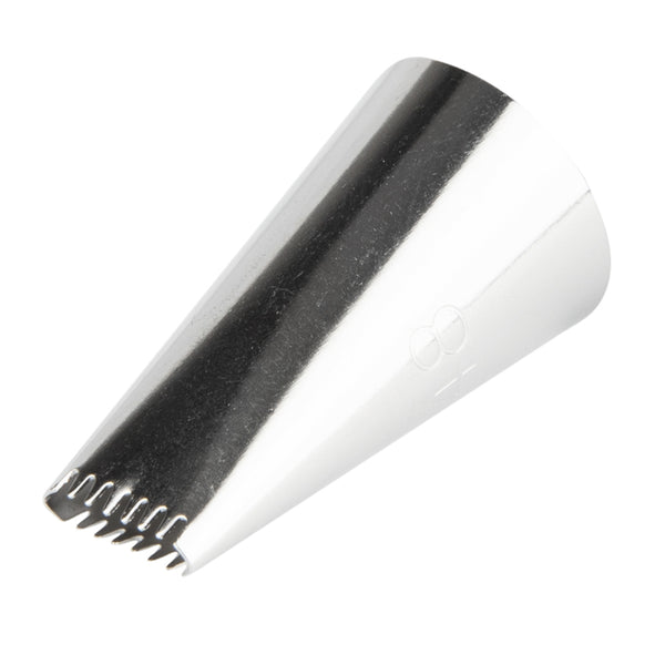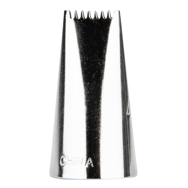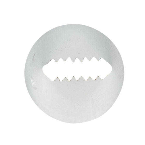 Cover your cakes with spectacular patterns and designs using this Pastry Tek Stainless Steel #48 Basketweave Piping Tip. Featuring an oval-shaped design with dual serrated edges, this piping tip is ideal for decorating the sides of a cake with basket weave icing or creating linear borders on cookies and cupcakes. Use this cake decorating tip for piping icing into dramatically ridged swirls, beautiful bows, swag borders, ribbed stripes, and more! Constructed from high-quality stainless steel, this icing tip is conveniently dent-resistant and designed to withstand commercial use. Each of these professional piping tips measures 0.7 inches in width by 1.2 inches in height, and fits most standard-sized piping bags and couplers. Shipped in a 1 count box.
