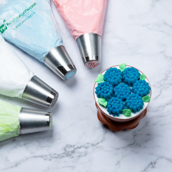 Easily add frosted details to cakes using our Pastry Tek Stainless Steel #57 Russian Piping Tip. This Russian tip is made with high-quality stainless steel, and is designed to be durable and withstand daily use at your bakery. To maintain it's premium appearance and design, this cake piping tip is corrosion-resistant and dent-resistant. Featuring a Russian tip design with multiple openings, this cake icing nozzle is perfect for piping grass, hair, petals, and textured frosting styles onto desserts. For a quick and easy cleanup, this Russian tip is dishwasher-safe. This cake piping tip is compatible with our selection of piping bags and Russian piping tip couplers. This cake icing nozzle measures 1.5 inches in diameter and 1.75 inches in height. Sold in a 1 count box.