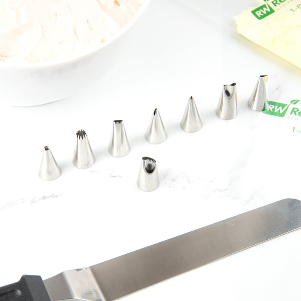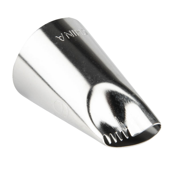 Create fun patterns and wild designs with this Pastry Tek Stainless Steel #62 Petal Piping Tip. Featuring a curved petal-shaped opening with a smooth and serrated edge, this piping tip is most commonly used to create textured petals of buttercream frosting. This professional-quality cake decorating tip is ideal for piping frosting with unusual effects, such as dramatic ruffles, uniquely-shaped shell borders, frilled flower petals, and more! Constructed from high-quality stainless steel, this cupcake icing tip is conveniently dent-resistant and corrosion-resistant. Each of these #62 specialty piping tips measures 0.7 inches in width by 1.1 inches in height and can be used with standard-sized piping bags and couplers. Sold in a 1 count box.