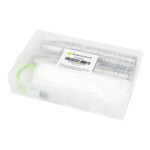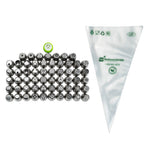 Pipe and decorate a variety of desserts using our Pastry Tek Stainless Steel Russian Piping Tip Set. Perfect for bakeries and catering services, this 68-piece piping set includes 57 Russian piping tips, 10 piping bags, and 1 tri-color coupler, all packaged in a clear plastic box. This piping set features a large selection of Russian piping tip designs, so you can easily pipe the flower of your choice onto cakes. The biodegradable piping bags are eco-friendly, durable, easy to use, and won't tear open when full of frosting or batter. Use our tri-color coupler to easily switch between decorating tools or pipe multiple colors seamlessly onto cupcakes. Each piping tip in this Russian tip set measures 1.5 inches in diameter and 1.75 inches in height. Each piping bag measures 18 inches in length by 8.6 inches in width. The tri-color coupler measures 1.8 inches in diameter. The plastic box measures 5.1 inches in length by 2.3 inches in height. Shipped in a 1 count box. This item will only degrade outside of the traditional solid waste stream.