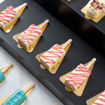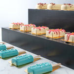 Uniquely present your small appetizers and desserts with our Pastry Tek Triangular SturdyServe Bases. Featuring a polished gold finish with a triangular shape, these modern small paper plates instantly beautify any tablescape, decor, or venue. Crafted from high-quality paper, these mini serving dishes are conveniently disposable and add a trendy look to your mini treats. Use these chic gold paper plates to stylishly serve a delicious slice of vanilla buttermilk cake at a catered wedding reception, or to elegantly display sweet slices of apple pie at a bakery. These small triangle plates measure 3 inches long by 4.7 inches wide and ship in a 200 count box.