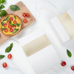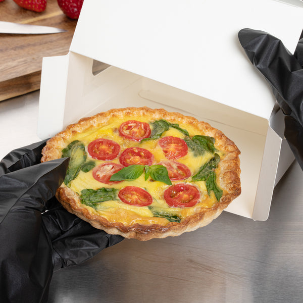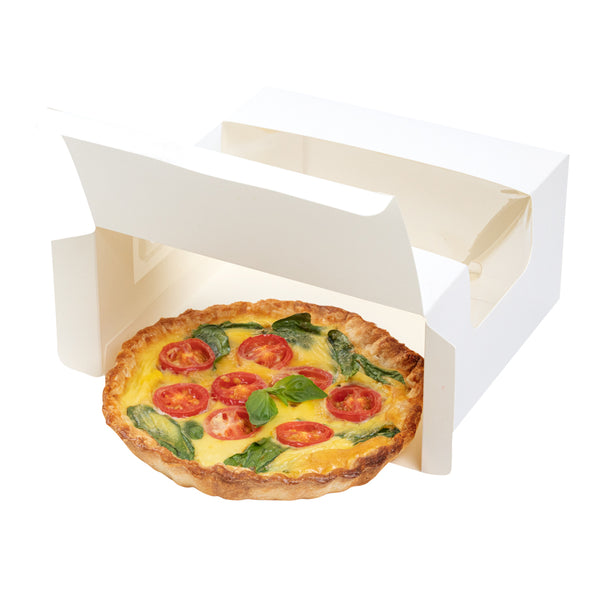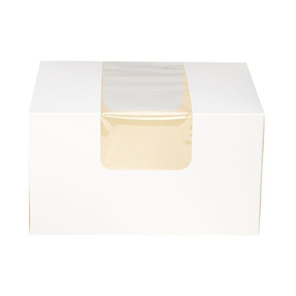 Provide a sneak peek of treats with our Pastry Tek White Paper Pastry / Cake Boxes. Designed with a clear window, these bakery boxes are ideal for easily displaying and identifying pastries or desserts. These grease-resistant cake boxes are constructed from premium paper to effortlessly withstand fried or hefty foods. Plus, these paper cupcake boxes are recyclable for a quick and sustainable cleaning process. Featuring a classic white finish, these paper cake boxes effortlessly match your establishment's theme or colors and accentuate the sweets packed inside. For space-saving storage, these bakery boxes ship flat and are easy to assemble for quick packaging. These white cake boxes measure 6.25 inches in width by 3.25 inches in height. Sold in a 100 count box.