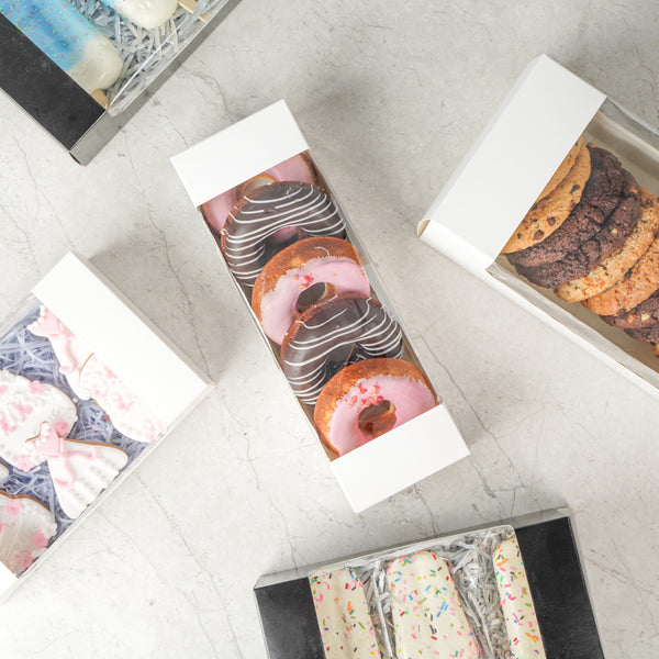- Transparent window allows a clear view of the enclosed pastry without opening the box