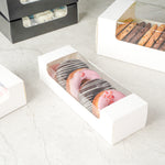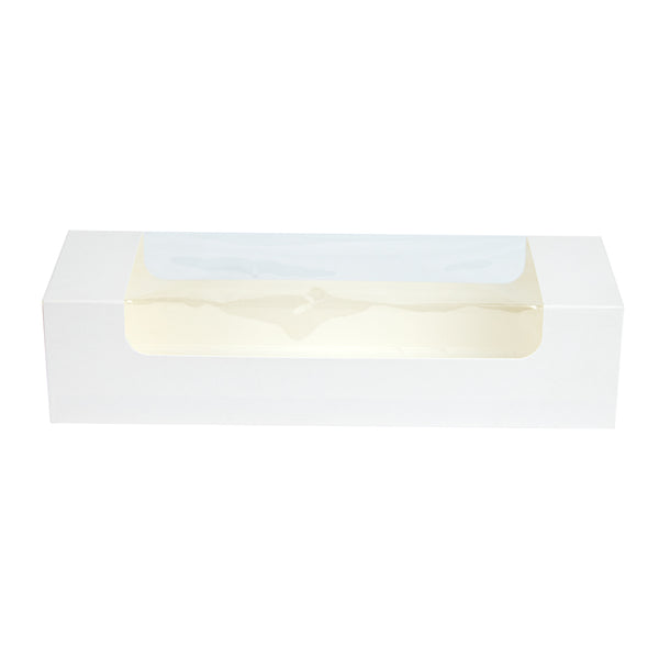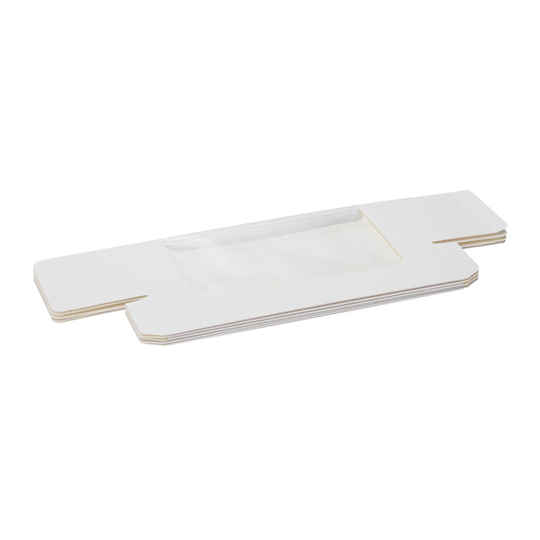 Easily pack dessert orders using our Pastry Tek White Paper Pastry / Cake Boxes. These paper cake boxes are constructed with a crystal clear window to provide a sneak peek of desserts inside. Crafted from high-quality paper, these cookie boxes are grease-resistant to withstand hefty and fried treats. Plus, these paper cake boxes are recyclable for easy and sustainable cleanup. Designed with a classic white finish, these bakery boxes seamlessly match the theme or colors of your establishment. To save space in your storage area, these pastry boxes are shipped flat and are easy to assemble. These white cake boxes have a total measurement of 9.75 inches in length by 3.25 inches in width by 2.25 inches in height. Sold in a 100 count box.