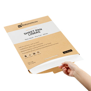 Keep your sheet pans protected with our Pastry Tek White Paper Half Size Sheet Pan Liners. These baking sheet liners are half size and pre-cut to fit numerous ingredients without the need for extra supplies. To avoid food sticking to your pans, these sheet pan liners are designed with a non-stick, double-sided silicone coating. These silicone cookie sheet liners are greaseproof to prevent undesired stains and residue while frying, grilling, or baking. To easily withstand various temperatures while cooking, these non-stick cookie sheet liners are temperature-resistant up to 445F. To minimize waste in your establishment, these cookie sheet liners are waterproof for easy washing and continuous use. Constructed from high-fiber density paper, these reusable cookie sheet liners are durable and feature a classic white finish made from virgin wood pulp. These half-size sheet liners are commercially compostable and measure 12 inches long by 16 inches wide. Sold in a 200 count box.