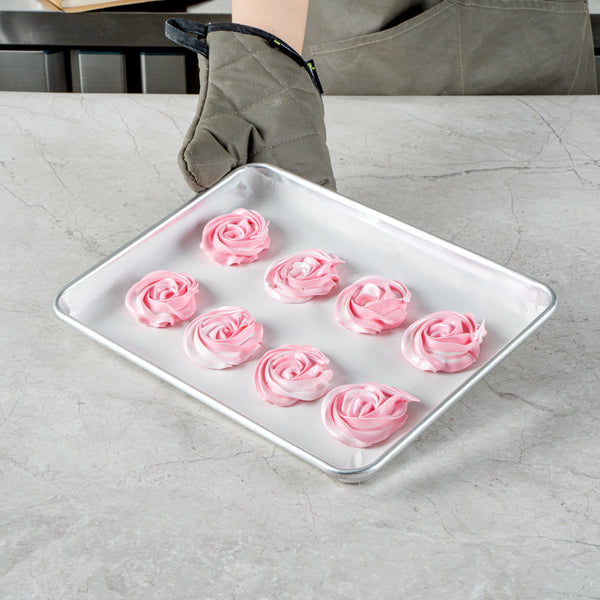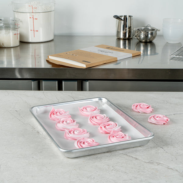 Prevent sticking and streamline your baking process effortlessly. The Pastry Tek Non-Stick Parchment Paper provides a seamless, non-stick surface with its double-sided silicone coating, allowing baked goods to release cleanly from the pan. Designed with a greaseproof construction, these compostable pre-cut baking sheets reduce the residue left behind, minimizing scrubbing and maintaining pristine pans. Each sheet is pre-cut to 9 inches by 13 inches, fitting standard quarter-size sheet pans perfectly and eliminating the time spent on manual cutting. Made from white silicone-coated paper, these non-stick parchment liners withstand high oven temperatures, making them ideal for a variety of baking needs from cookies to pastries. Enhance your kitchen efficiency and ensure a smooth baking experience with this indispensable kitchen tool. Each order includes 200 Pastry Tek Non-Stick Parchment Papers.