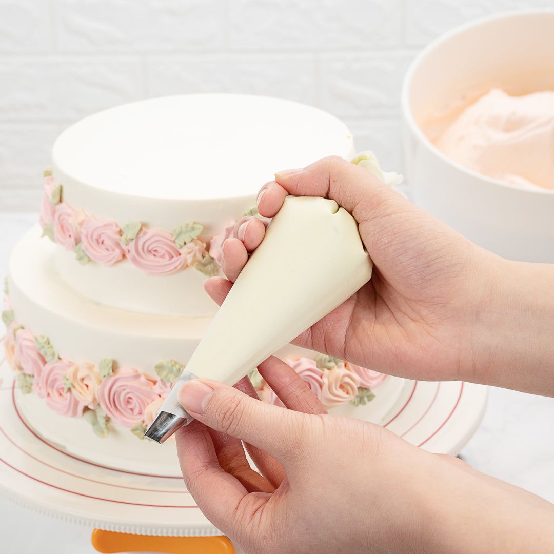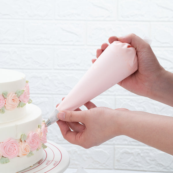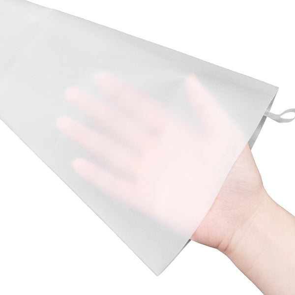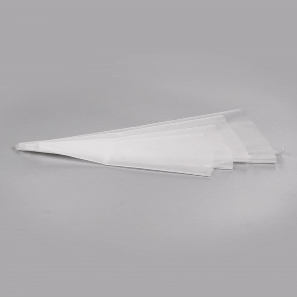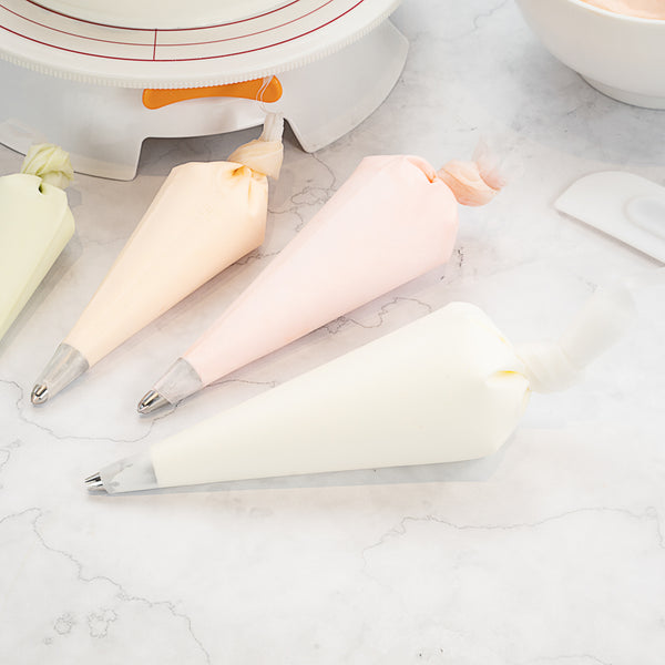 Pipe several colors onto tiered cakes or themed cupcakes using our Pastry Tek White Silicone Pastry Piping Bag 4-Piece Set. Perfect for multi-purpose decorating, these frosting bags arrive in 4 different sizes so you can easily fill and pipe a variety of colors all at once. Crafted with high-quality silicone, these food grade icing piping bags ensure a safe way to frost sweets. Featuring a durable yet soft design, the bags in this cake piping kit can be quickly trimmed to any size without the worry of tears or rips. To create intricate designs with ease, these frosting bags are lightweight and comfortable to hold. The classic white finish of these frosting bags creates a seamless look that perfectly matches the rest of your baking supplies. These icing piping bags are conveniently reusable and can be hand washed after use to maintain their appearance and quality. This cake piping kit includes 4 piping bags that measure 10.25 inches in length by 6.2 inches in width, 12 inches in length by 6.25 inches in width, 14 inches in length by 7.25 inches in width, and 16 inches in length by 8.75 inches in width. Shipped in a 1 count box.