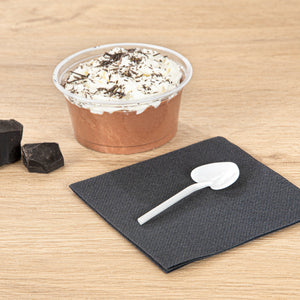 Customers are sure to fall in love with your delectable desserts when they're served alongside our Coppetta Pearl White Plastic Love Shovel Spoons. Featuring a unique heart-shaped shovel design, these mini plastic spoons are perfect for scooping up your big bites of gelato and creamy swirls of frozen yogurt. The stylishly slender handle of these recyclable dessert spoons is designed to be easy to grip. With the strong and sturdy construction of these heart shovel spoons, they are hard to snap or break while in use. Conveniently disposable, these tasting spoons streamline your cleaning process. Measuring 3.5 inches in length by 1.25 inches in width, these miniature spoons are a must-have for every fro-yo shop. Sold in a 100 count box.
