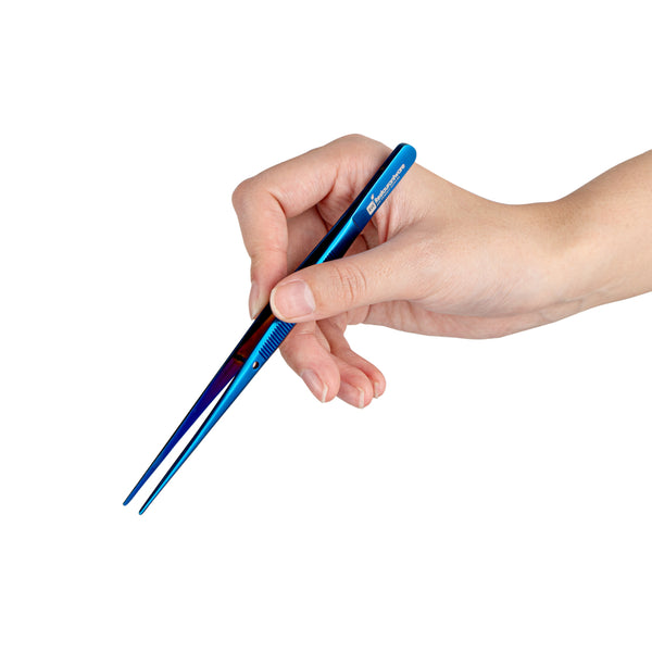 TITANIUM BLUE STAINLESS STEEL FINE POINT TWEEZERS
