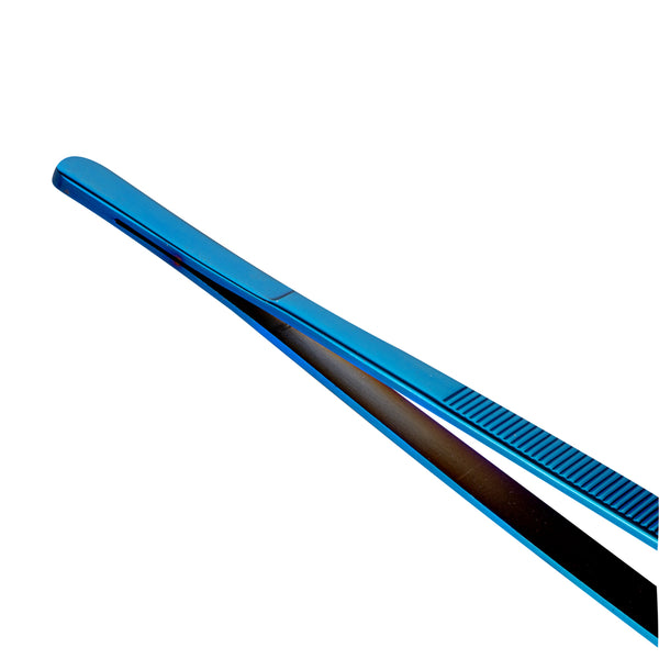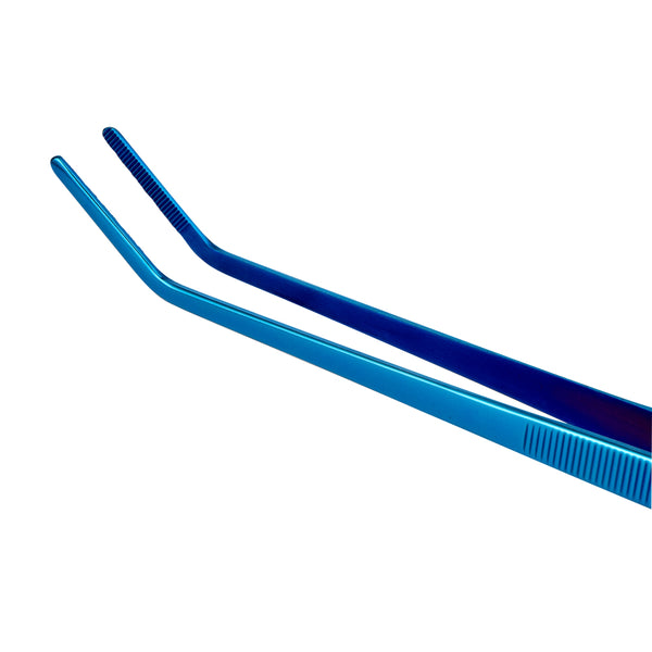 TITANIUM BLUE STAINLESS STEEL LONG SLANT NOSE TWEEZERS